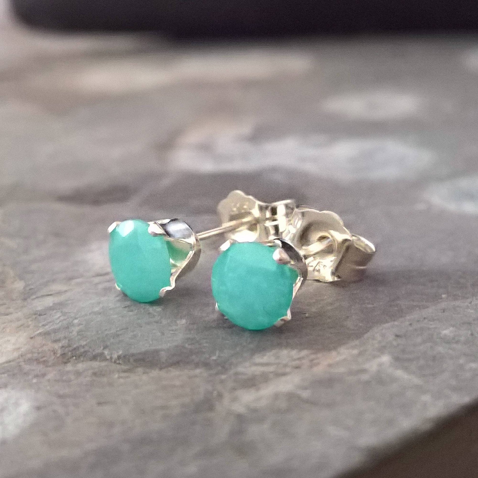 Amazonite stud earrings in sterling silver or gold filled