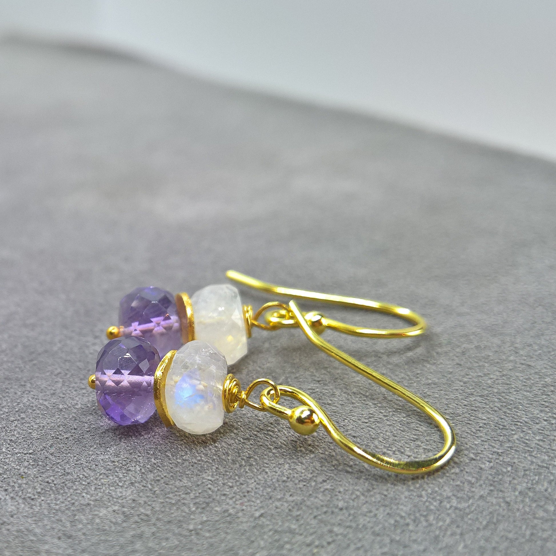 - 1 pair of Amethyst and rainbow moonstone dangle earrings