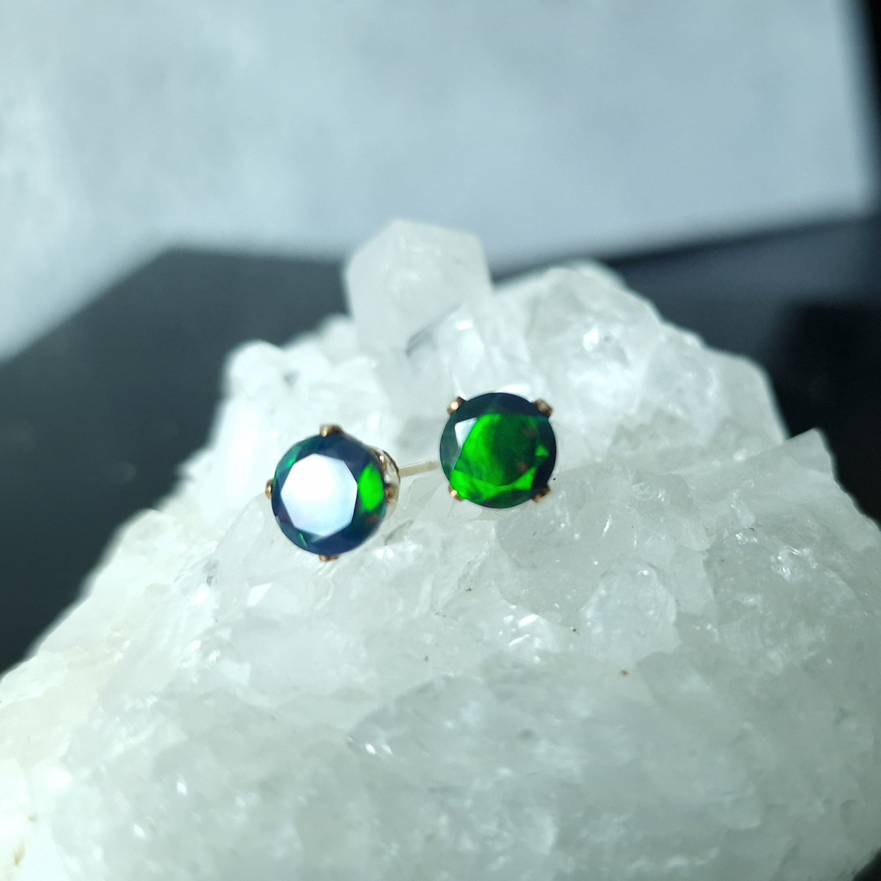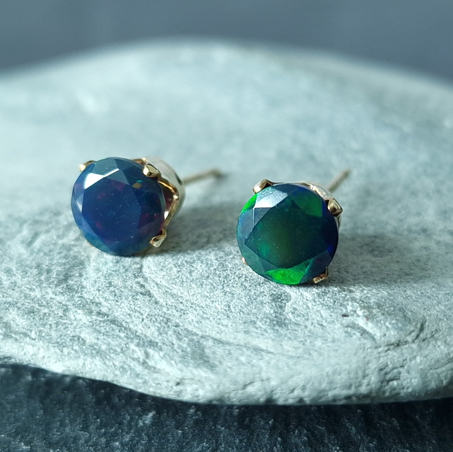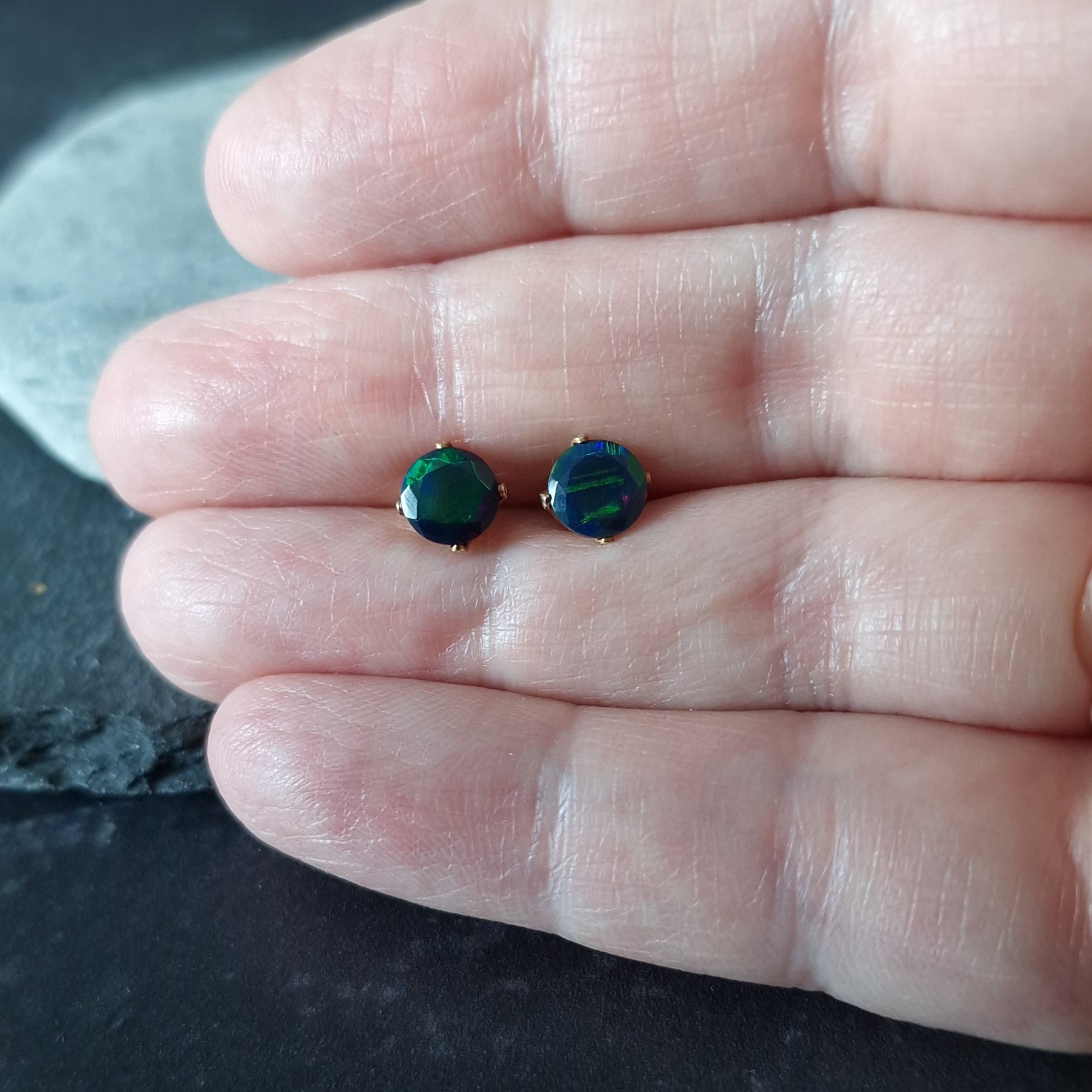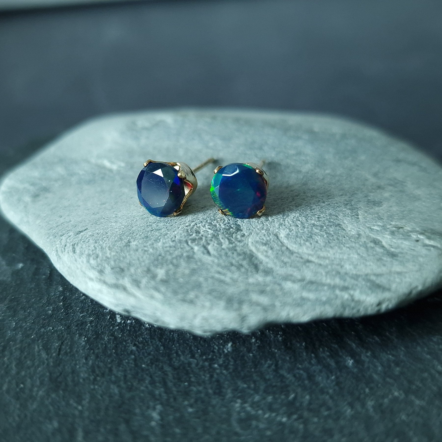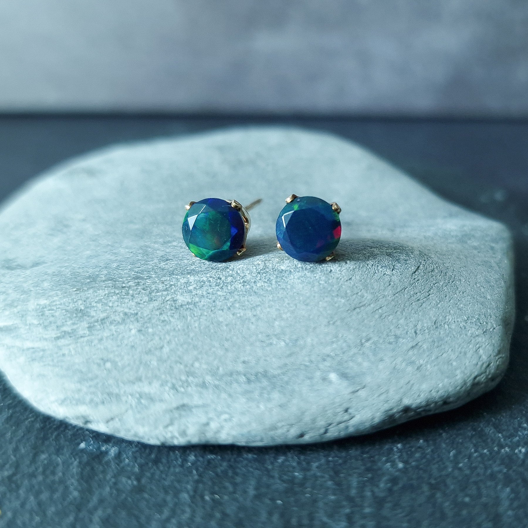 Black Opal stud earrings in 14k gold fill or sterling silver - delicate treated Ethiopian black opal facets like the Aurora Borealis in the winter sky. Make someone's Christmas special with these classic stud earrings.