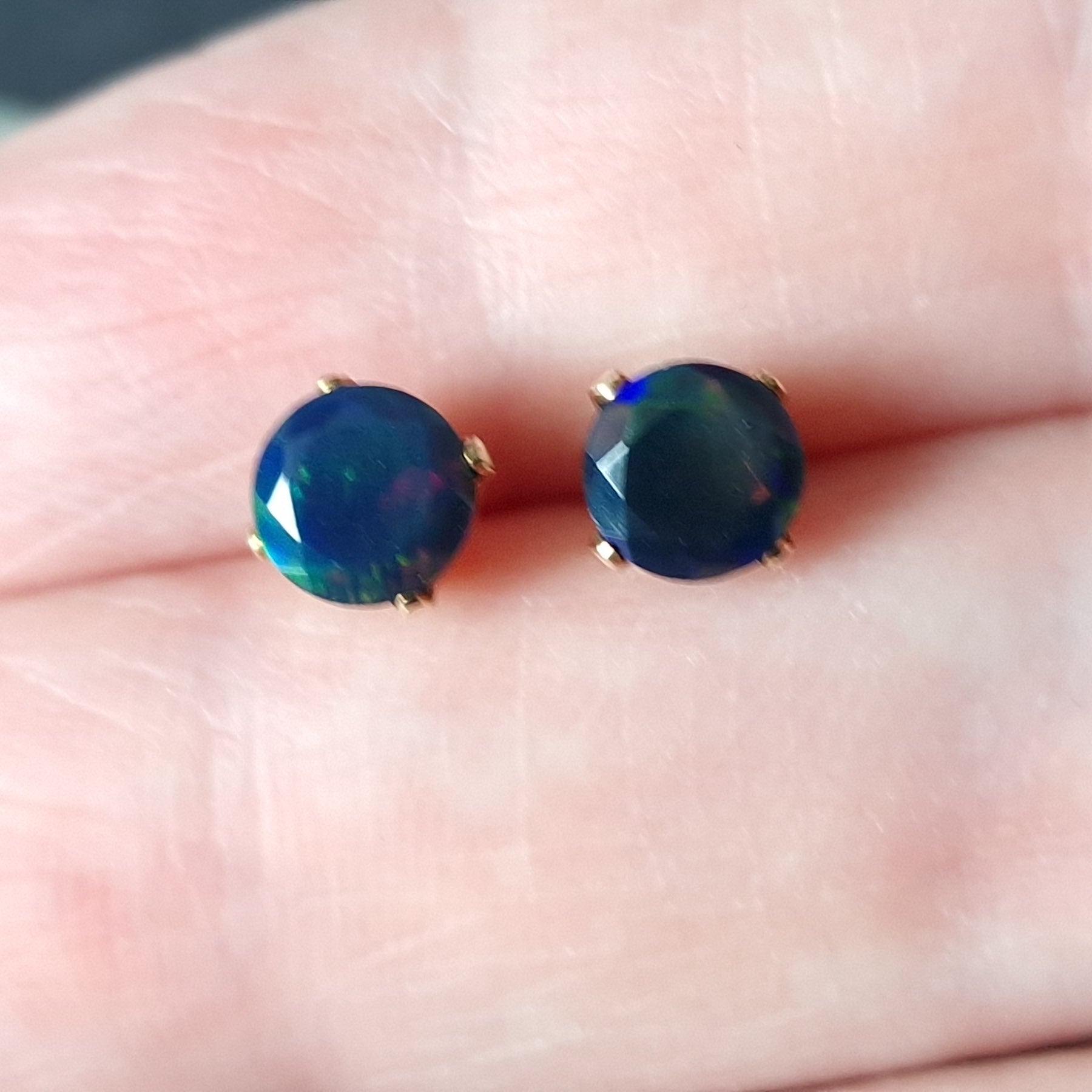 1 Pair of Black Ethiopian Opal stud earrings in 14k gold fill or sterling silver