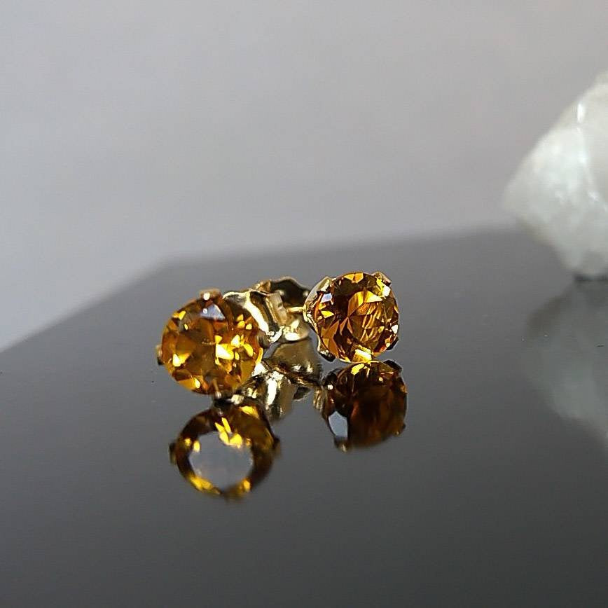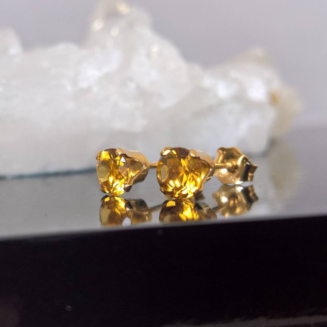 Citrine stud earrings in gold fill - Simple and elegant yellow Citrine studs you can wear with anything! Citrine is one of the birthstones for November. Choose from two sizes, 5MM or 6MM.