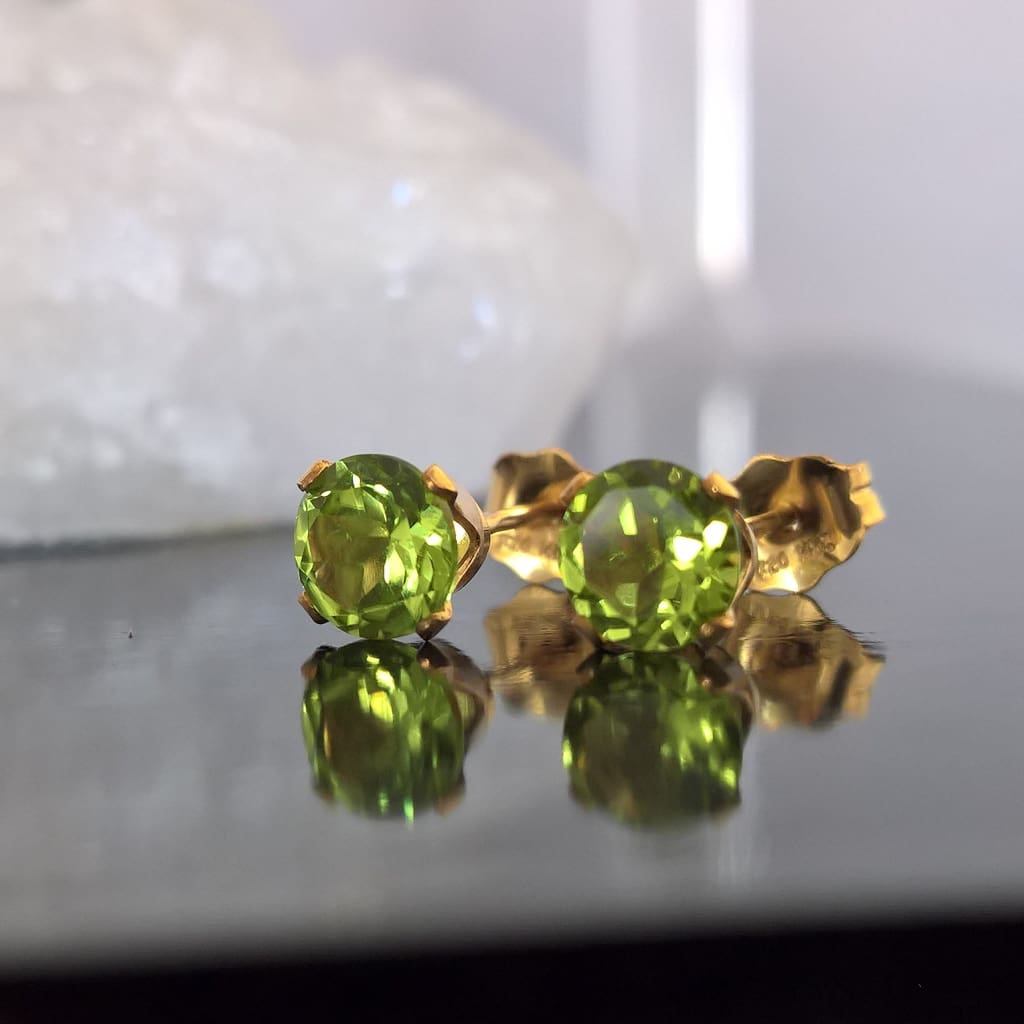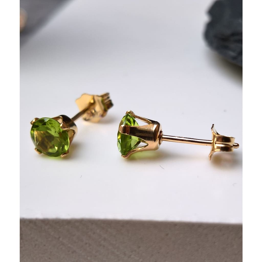 Peridot earrings studs in gold fill - Make a statement with these dainty gemstone earrings. Peridot is the birthstone for August.