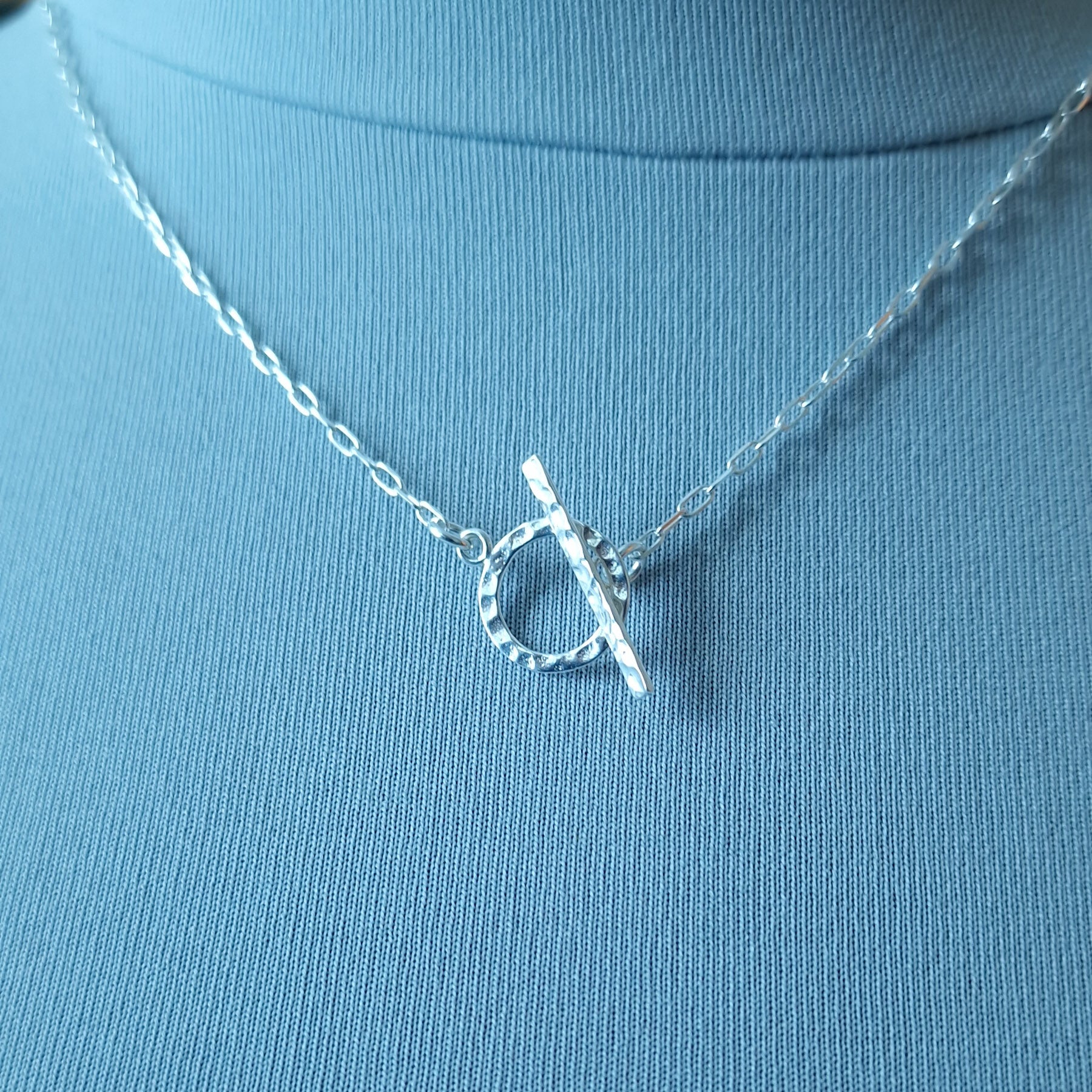Hanging from a dramatic drawn sterling silver chain, the necklace is completed with a stylish hammered toggle closure, offering a bold yet elegant accessory for any occasion. Whether worn with casual or formal attire, this statement necklace blends modern design with timeless beauty, making it a stunning addition to any jewellery collection.