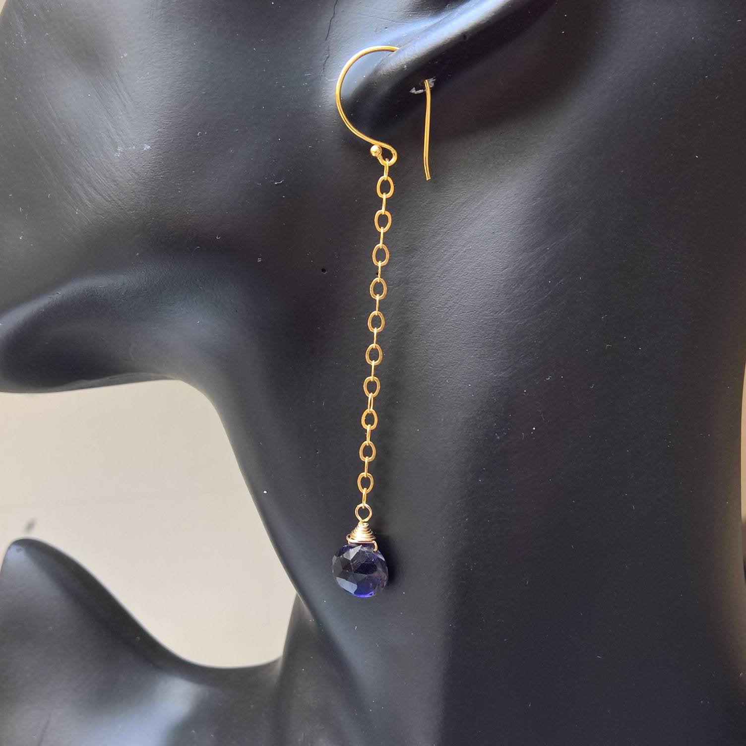 - These Iolite gold drop earrings are approx 2.25 inches / 57mm in length