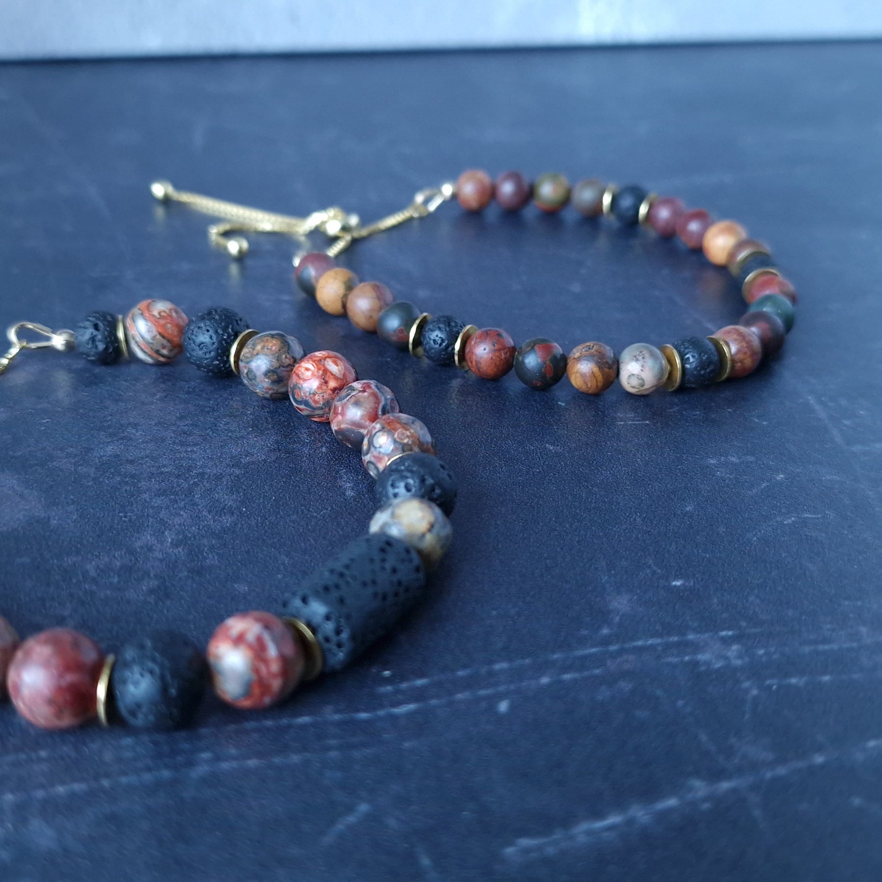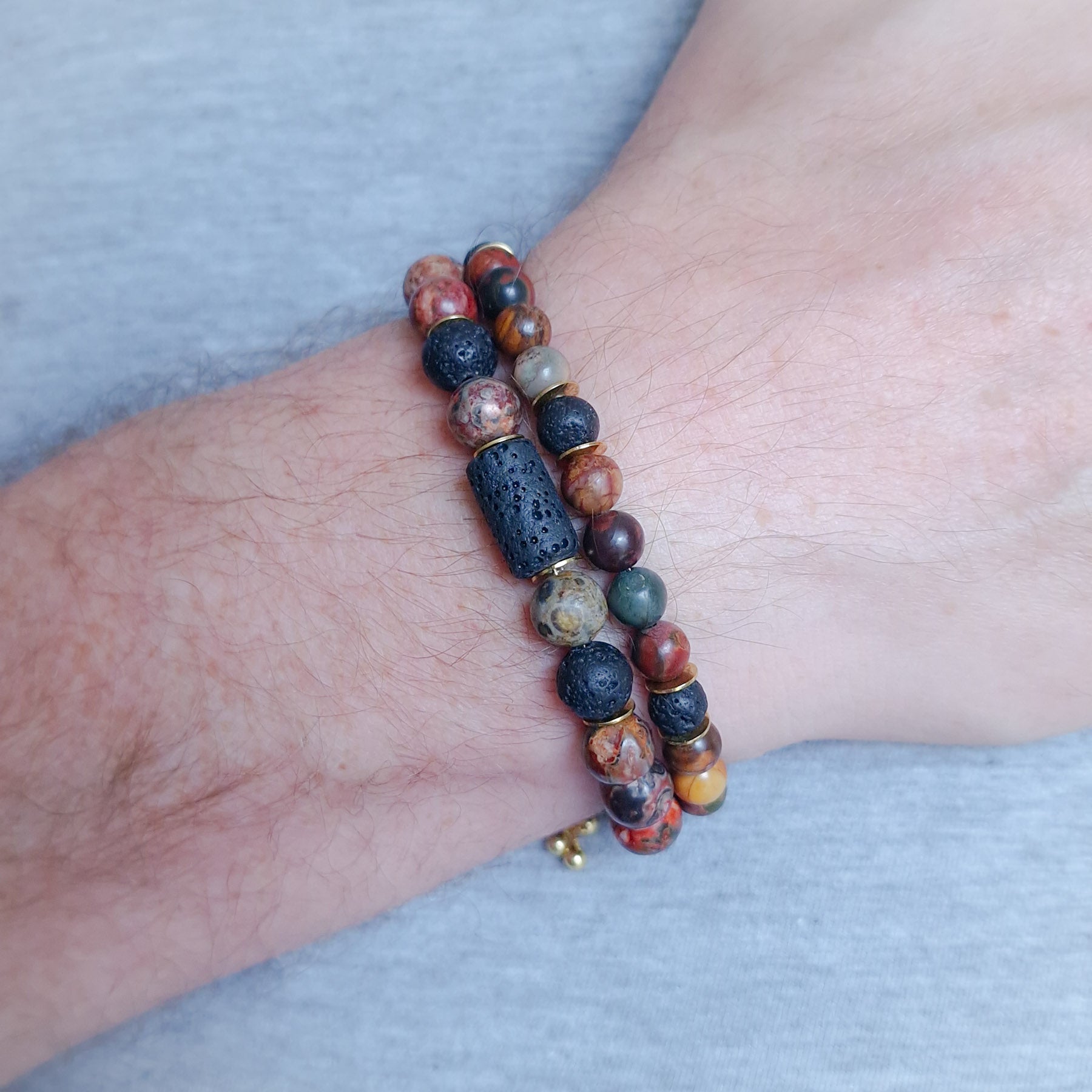 Jasper beads bracelet set of two natural stone gold vermeil bracelets for men