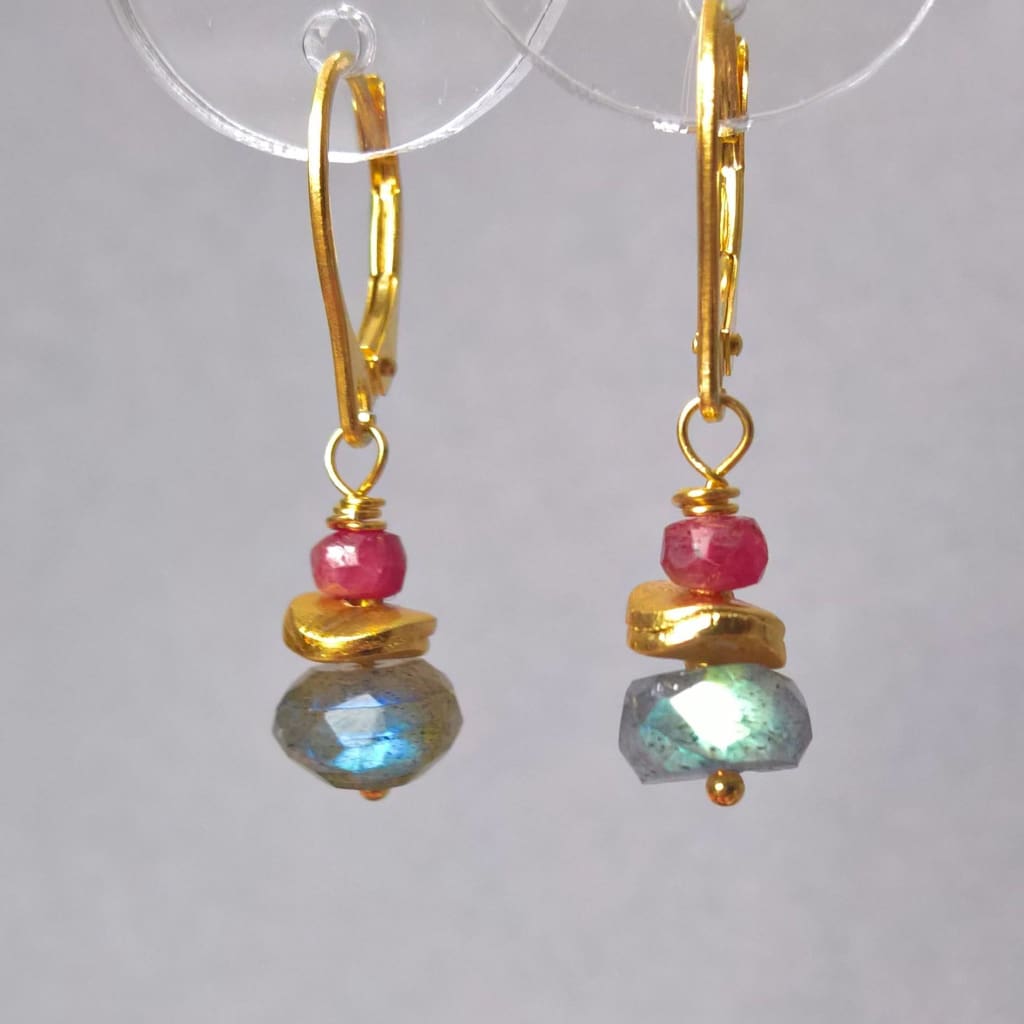 - 1 pair of Labradorite ruby gold vermeil dangle earrings