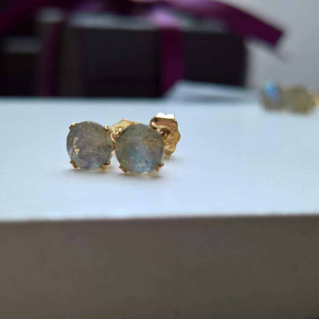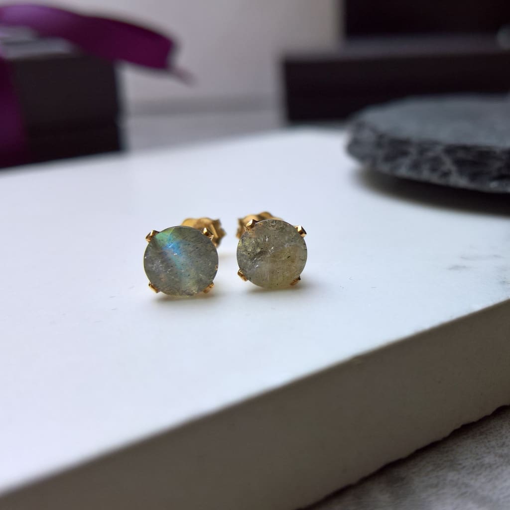 Labradorite earrings studs in gold fill - Make a statement with these dainty gemstone earrings. Choose between 2 sizes in 14k gold filled in 6mm or 5mm.