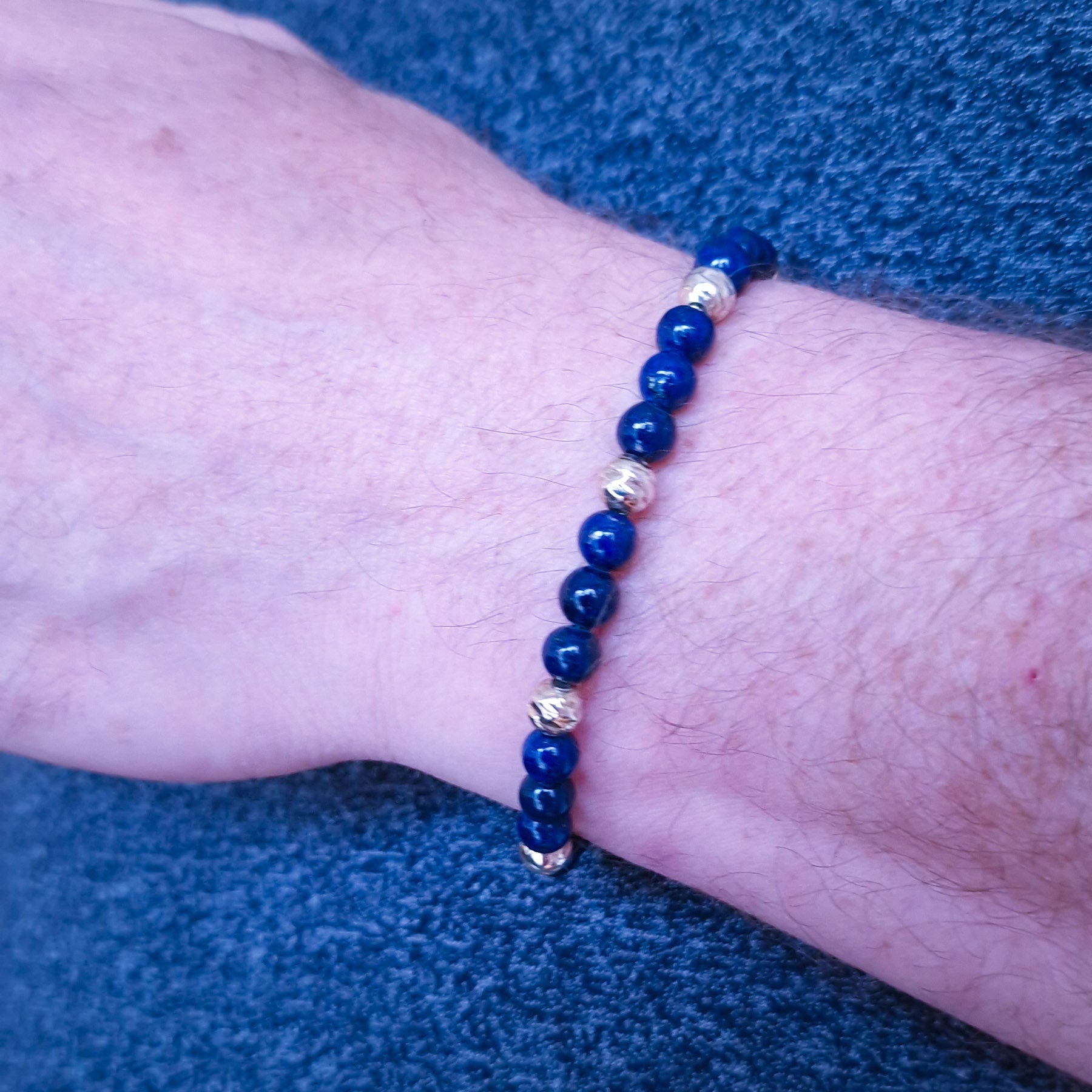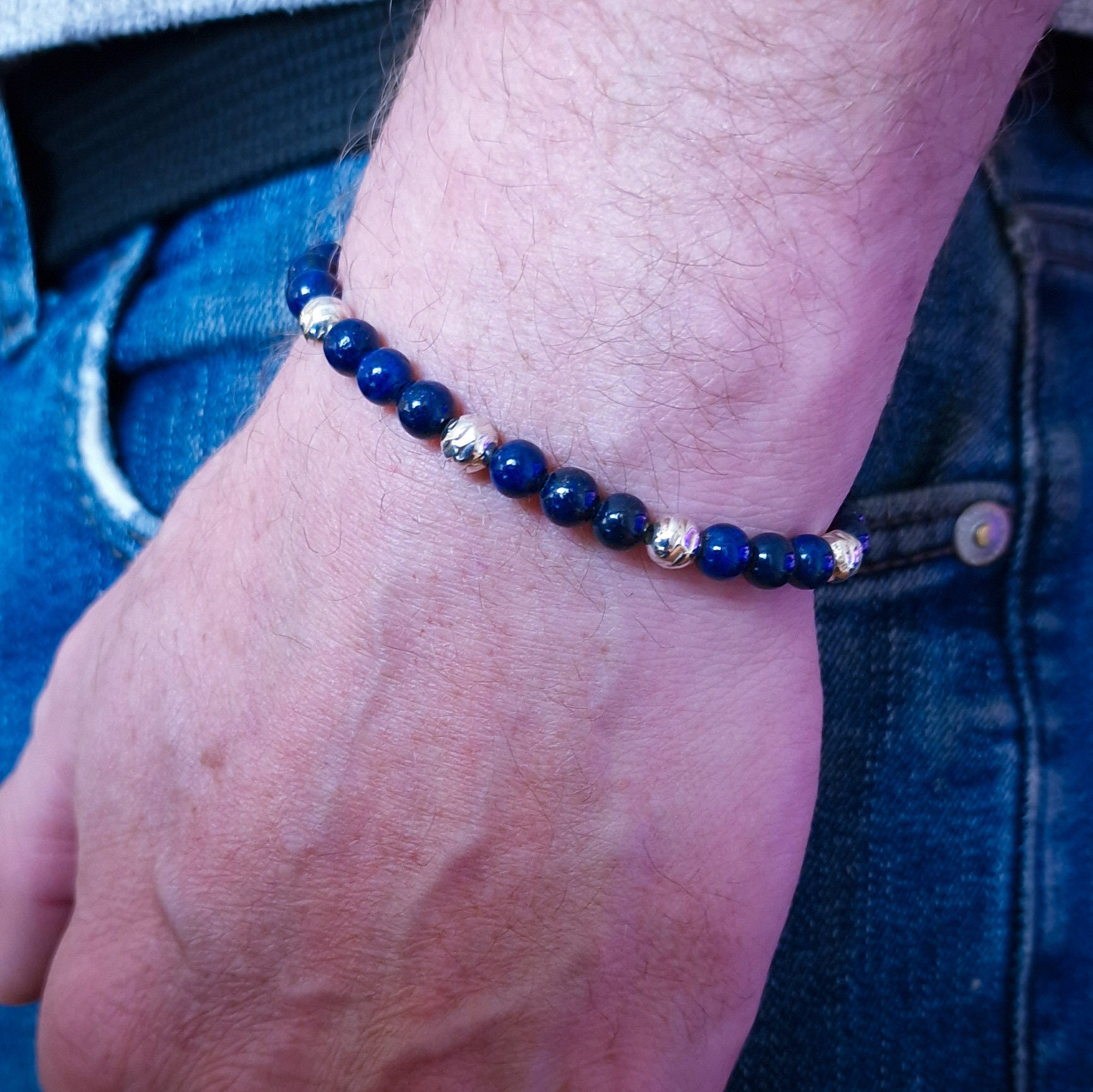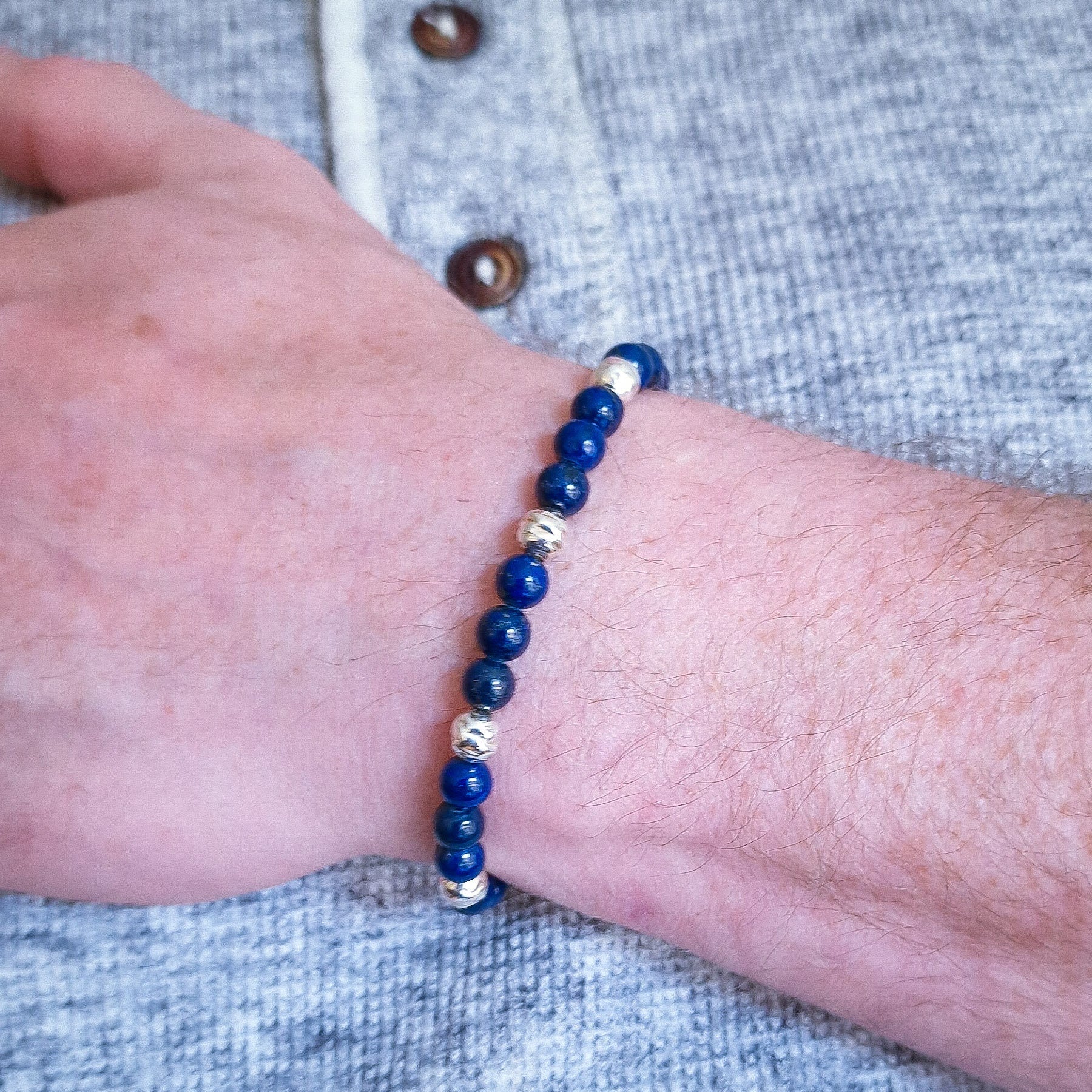 Lapis Lazuli beaded sterling silver gemstone bracelet for men