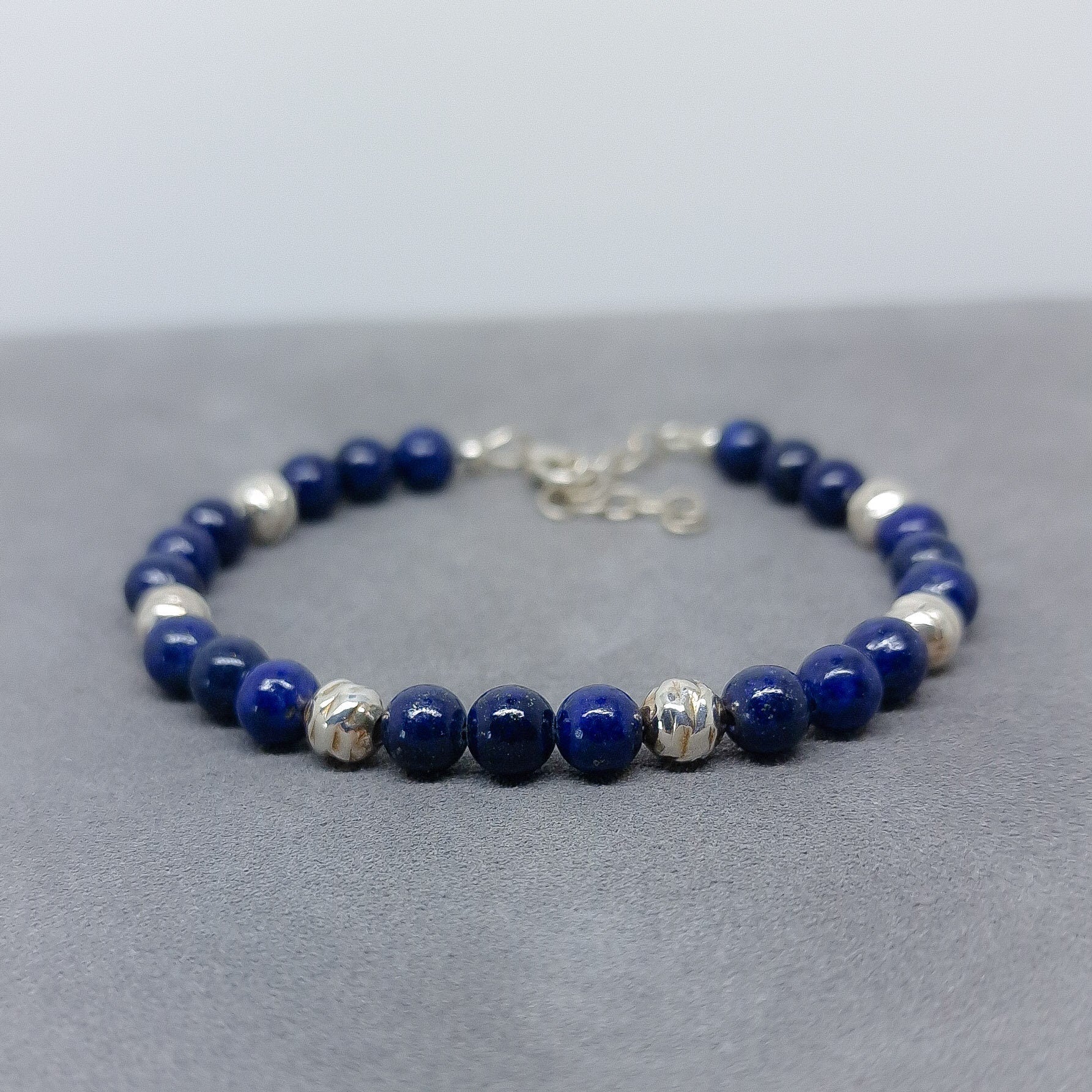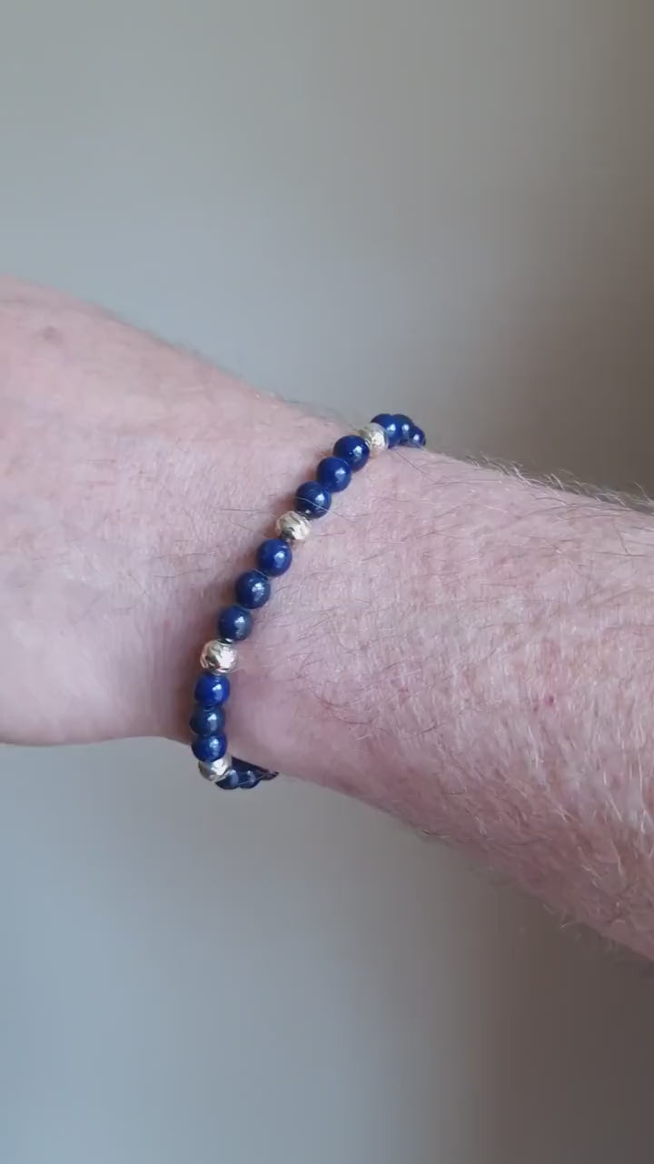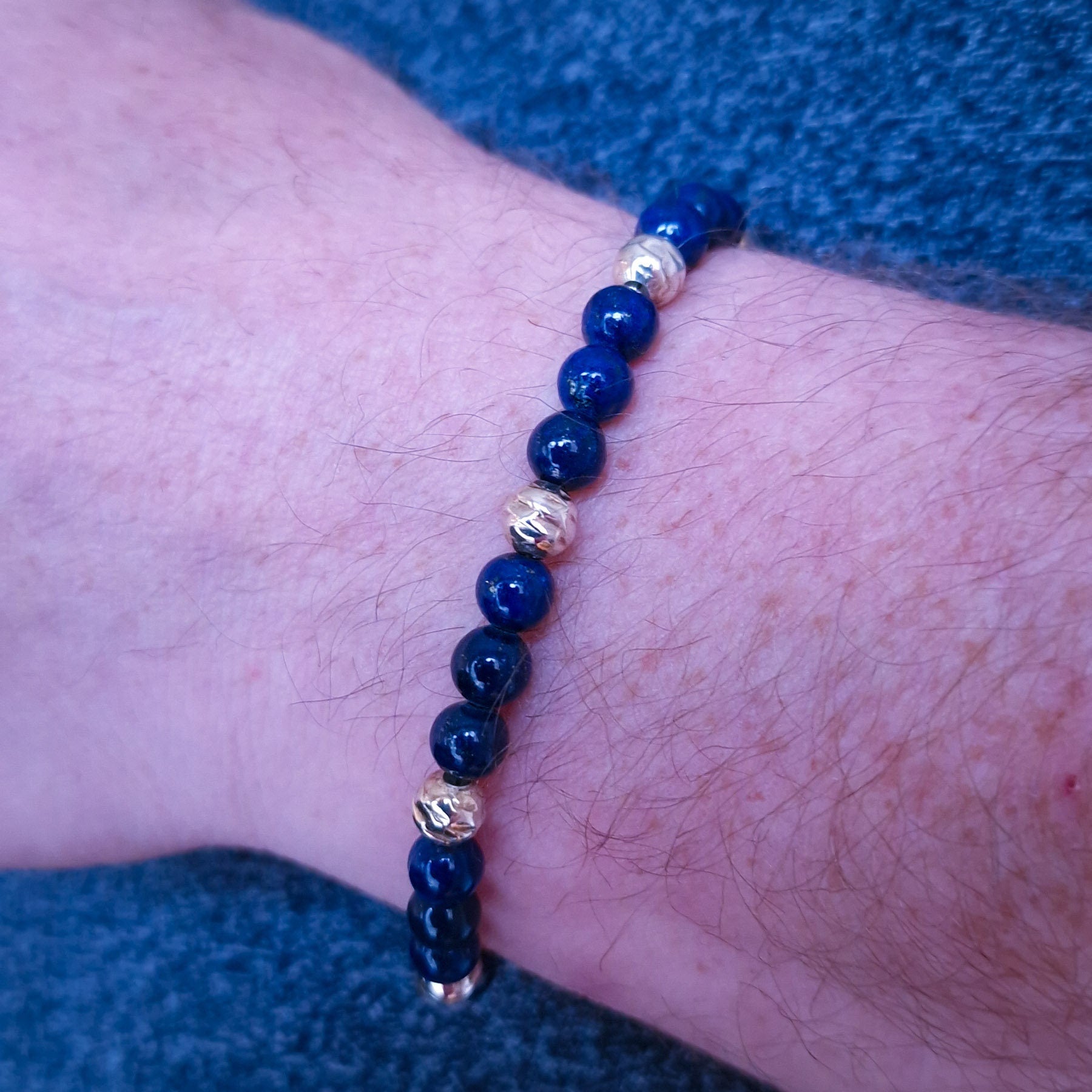 Lapis Lazuli beaded sterling silver gemstone bracelet for men