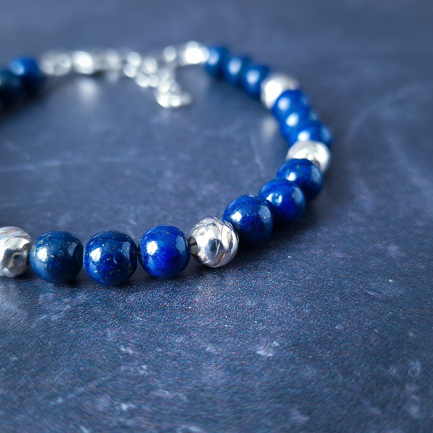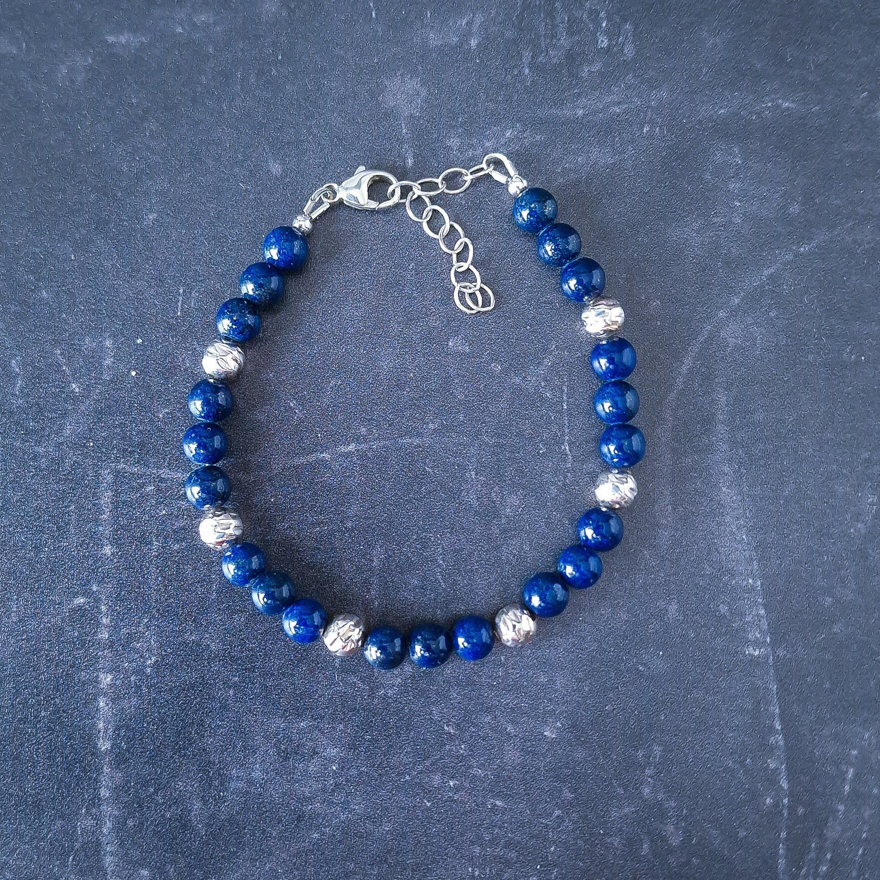 - 1 Lapis Lazuli sterling silver beaded bracelet