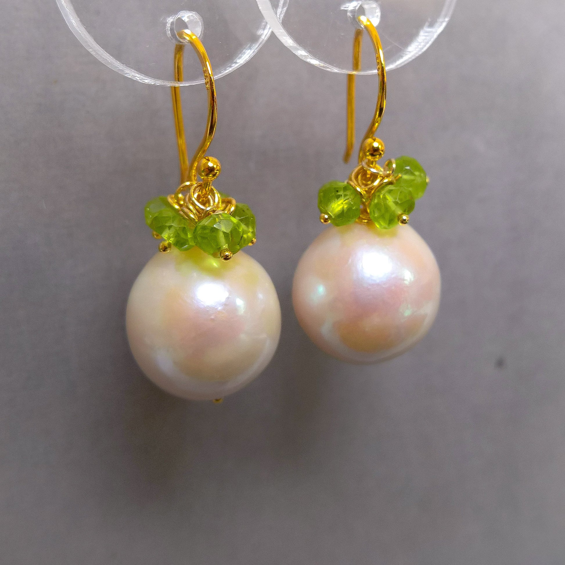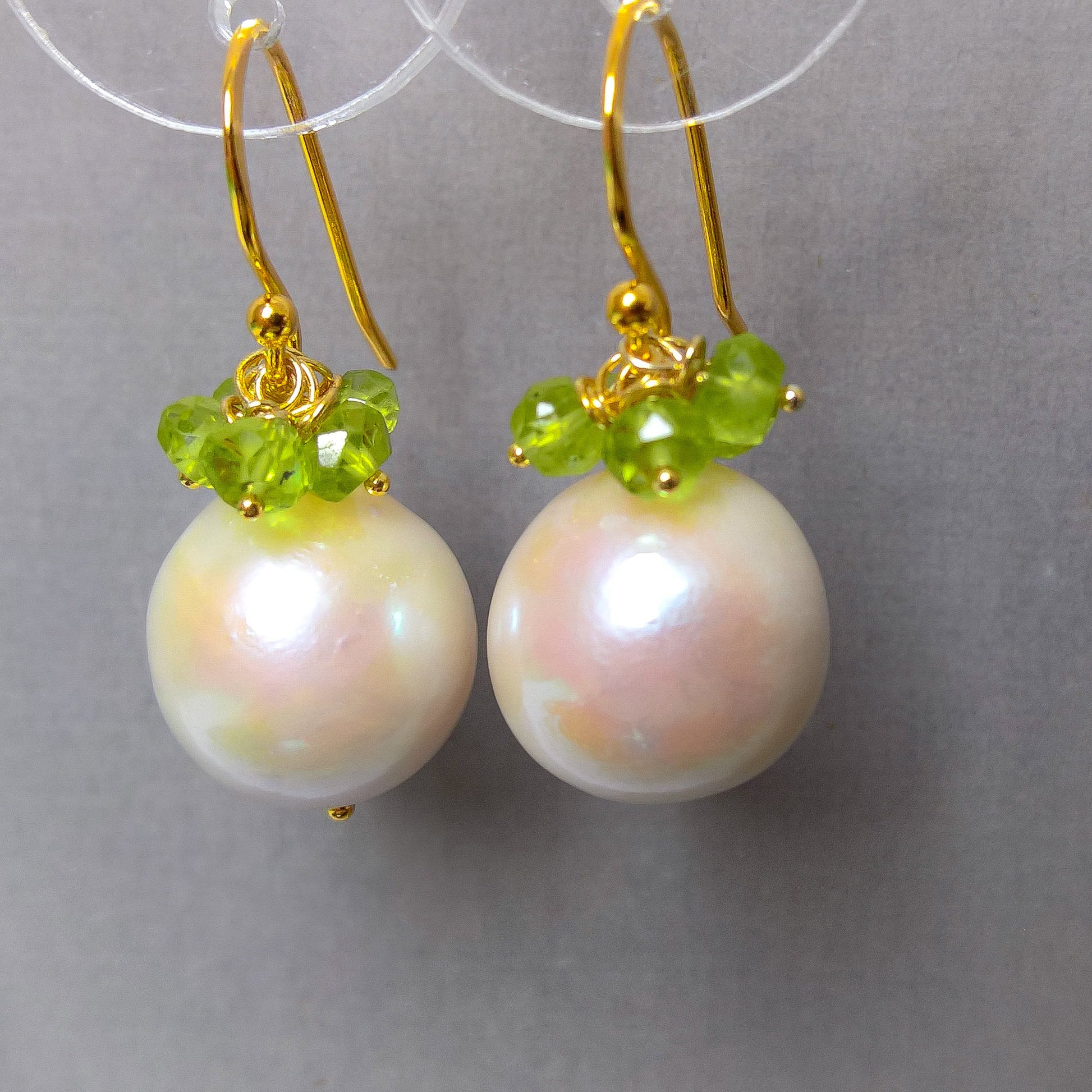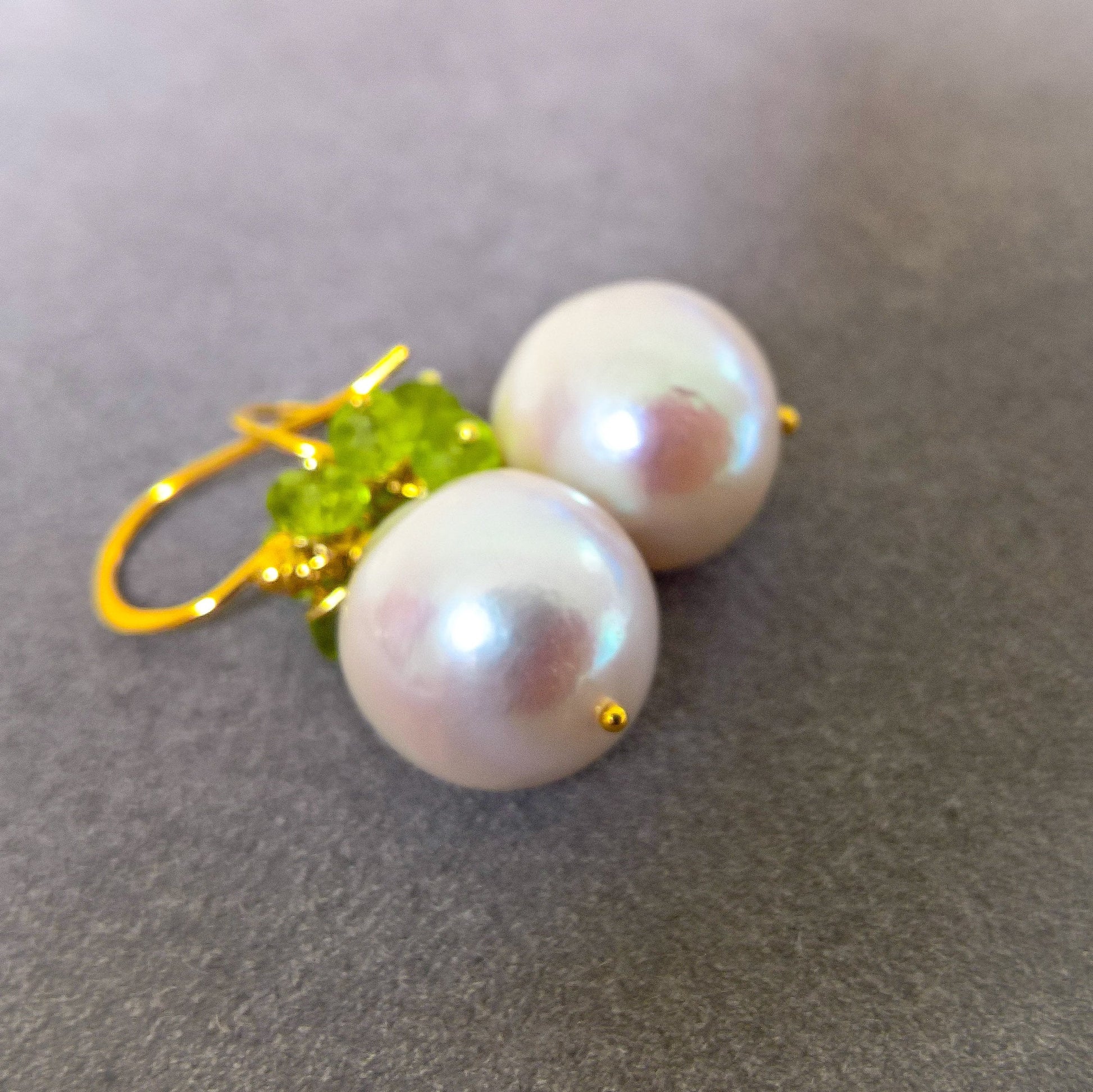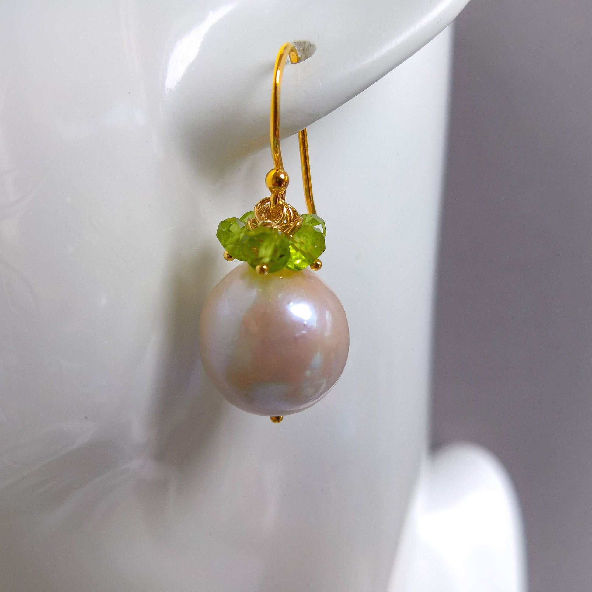- The pearl and peridot cluster earrings are approximately 1 inch in length from the top of the ear wire.