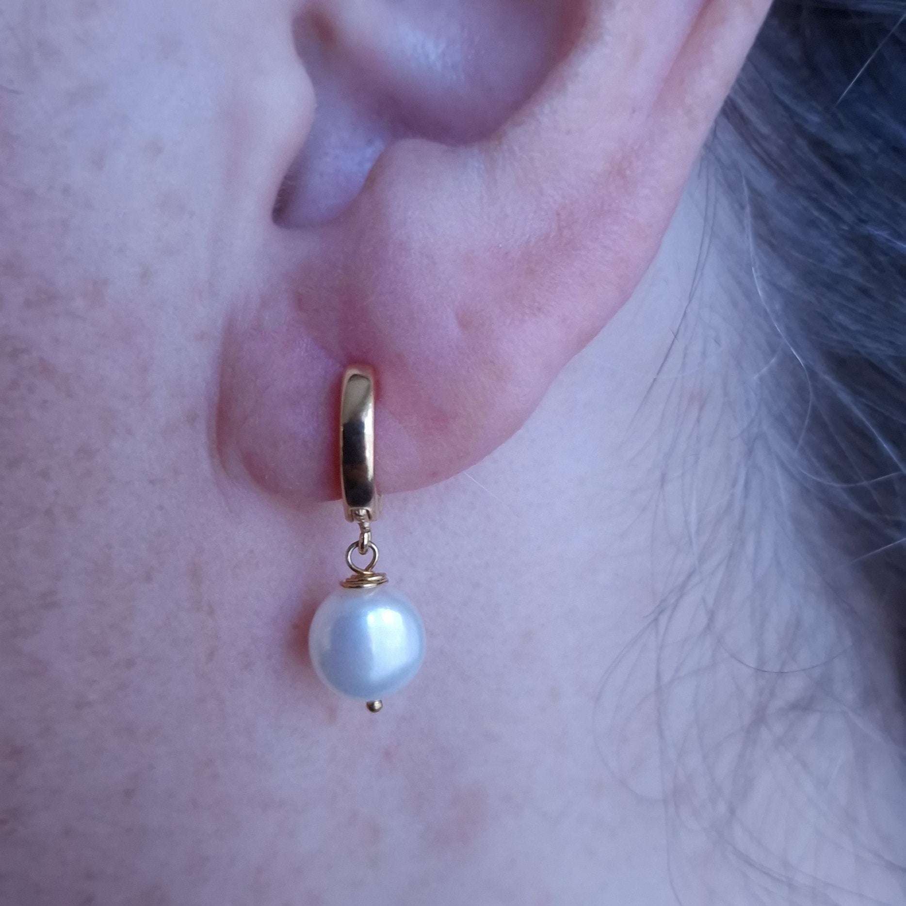 - The pearl huggie is approximately 25mm / 1 inch in length