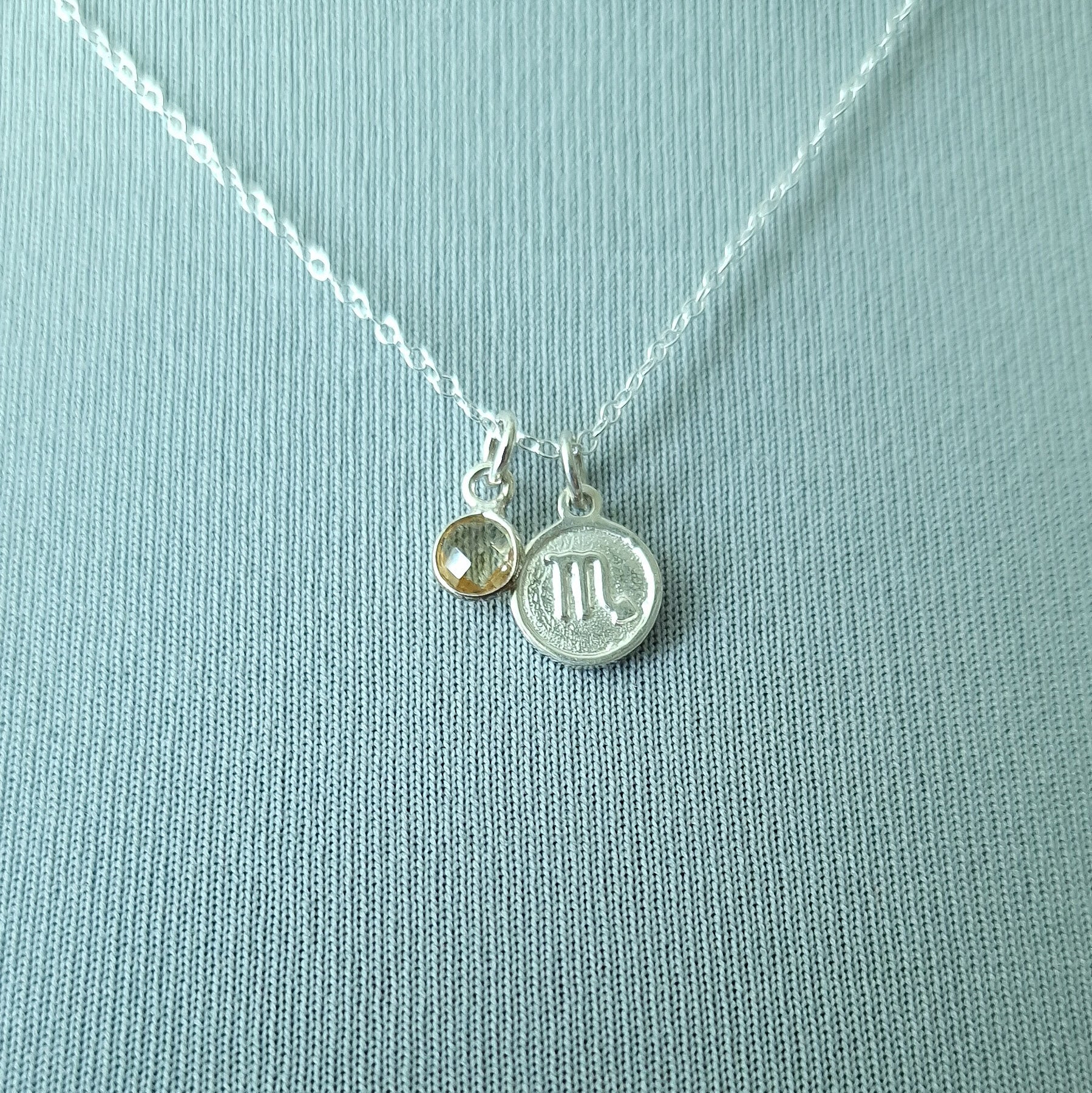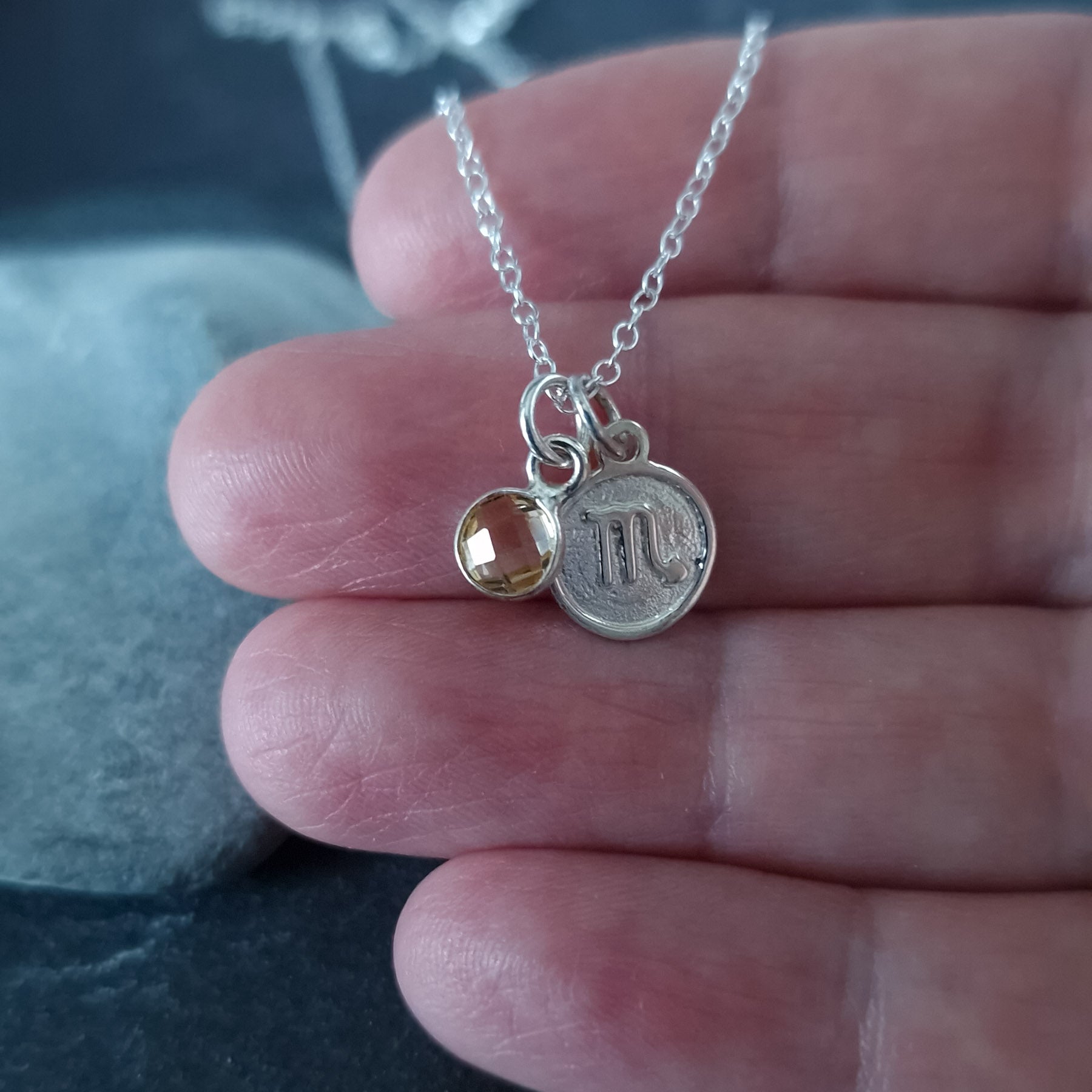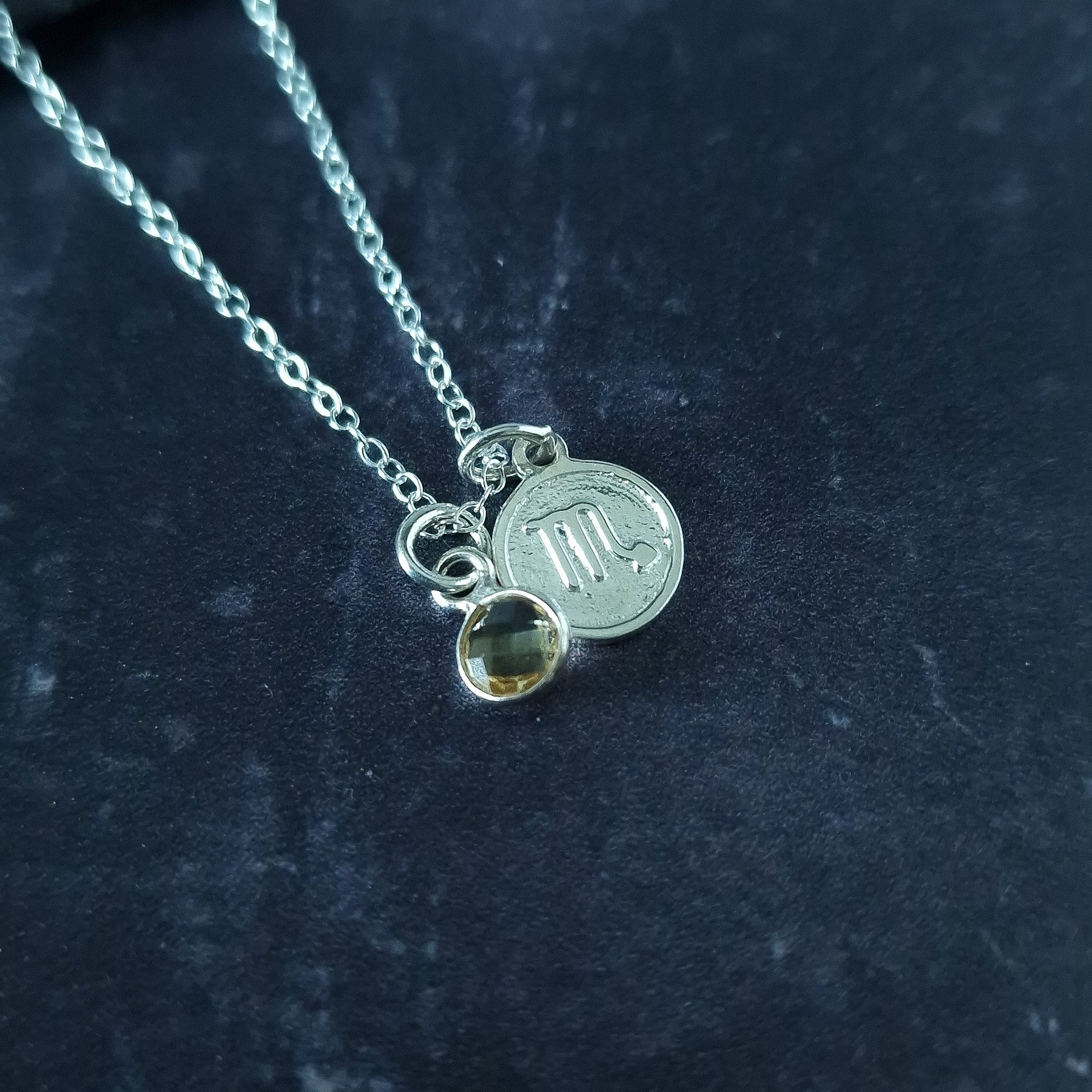 Scorpio Citrine Birthstone Pendant Necklace Sterling Silver