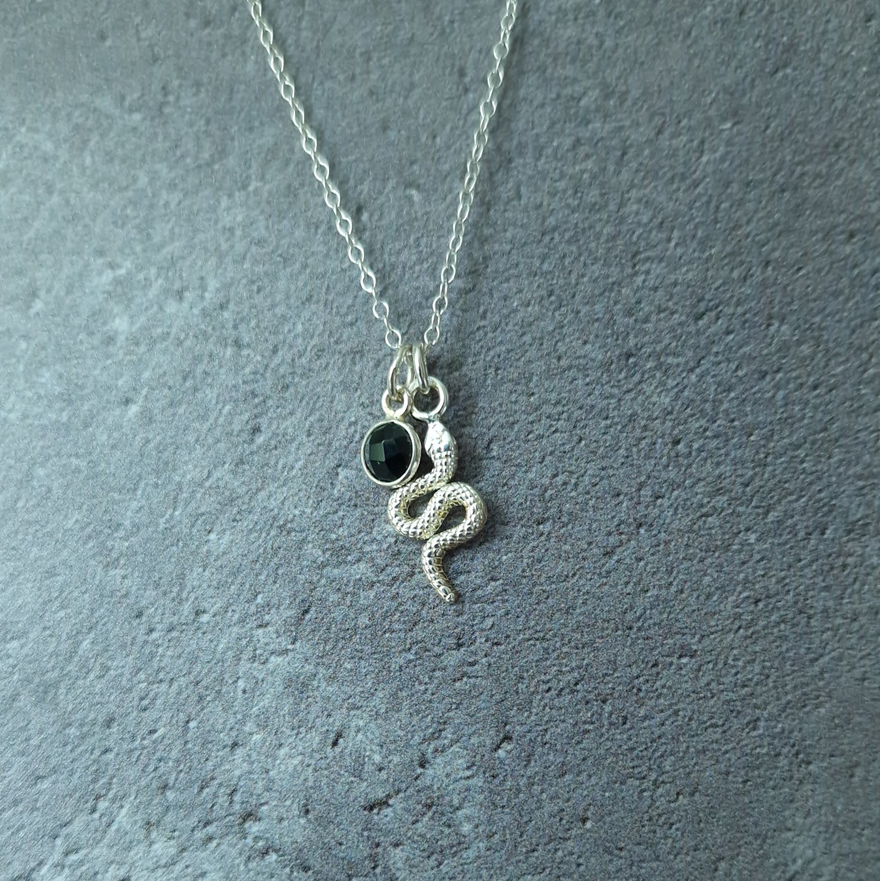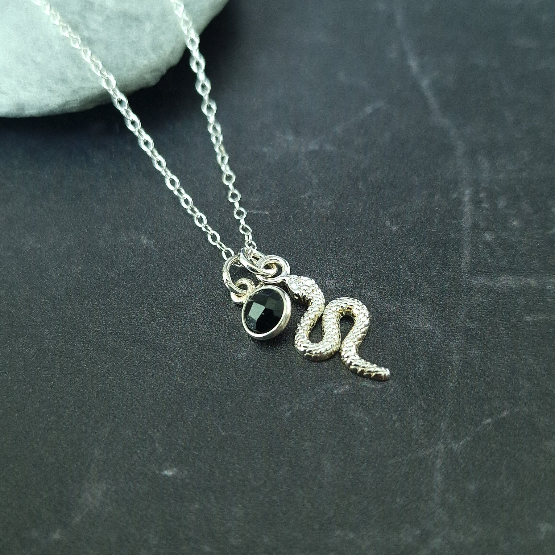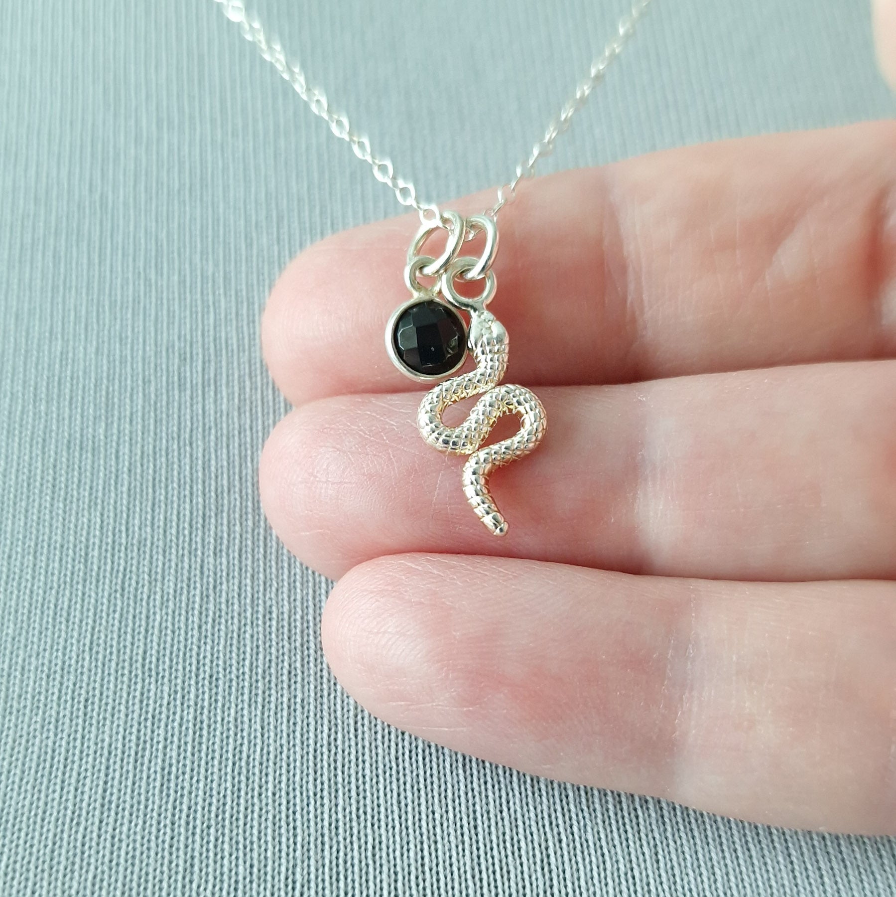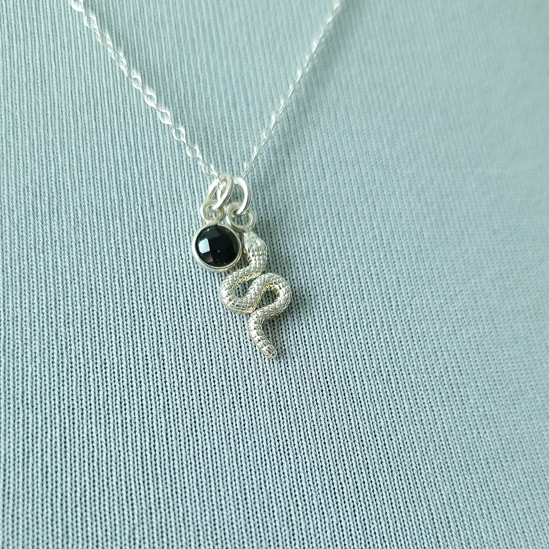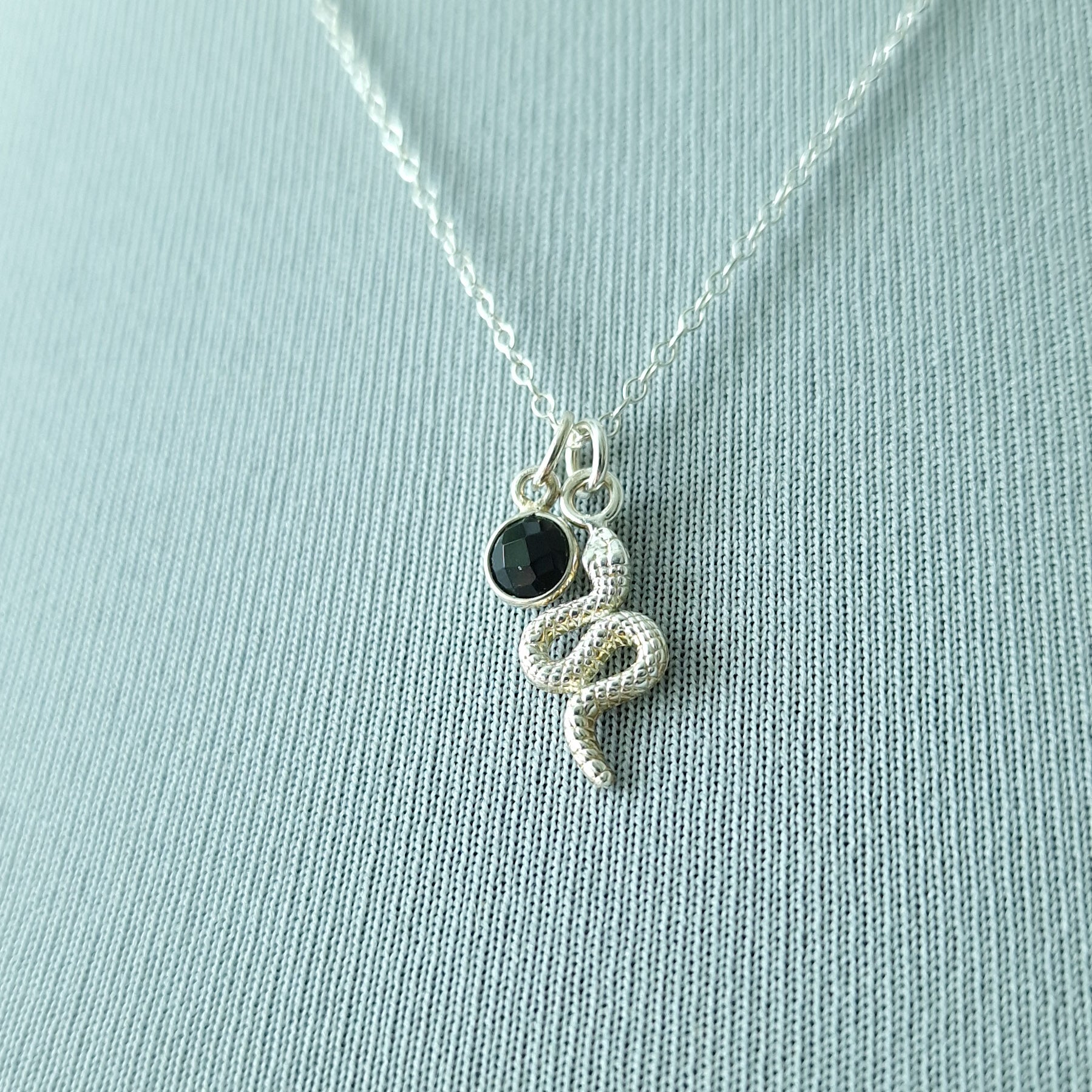 Snake pendant necklace sterling silver with Black Onyx birthstone pendant