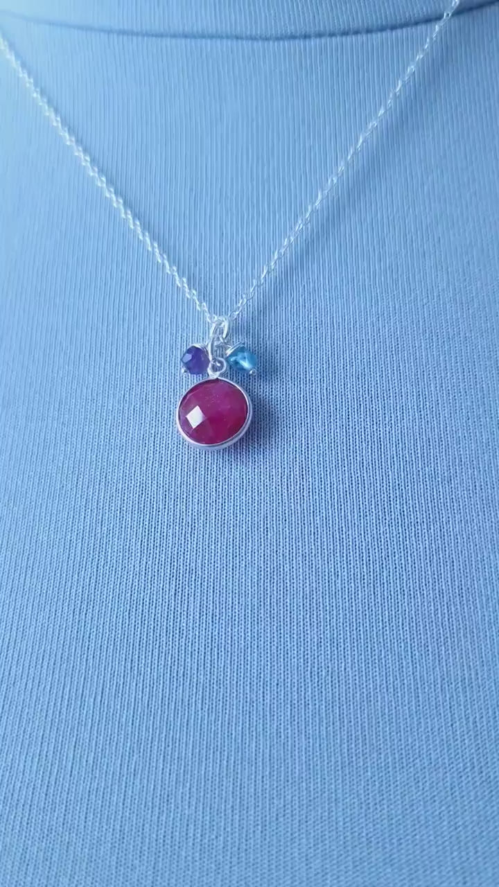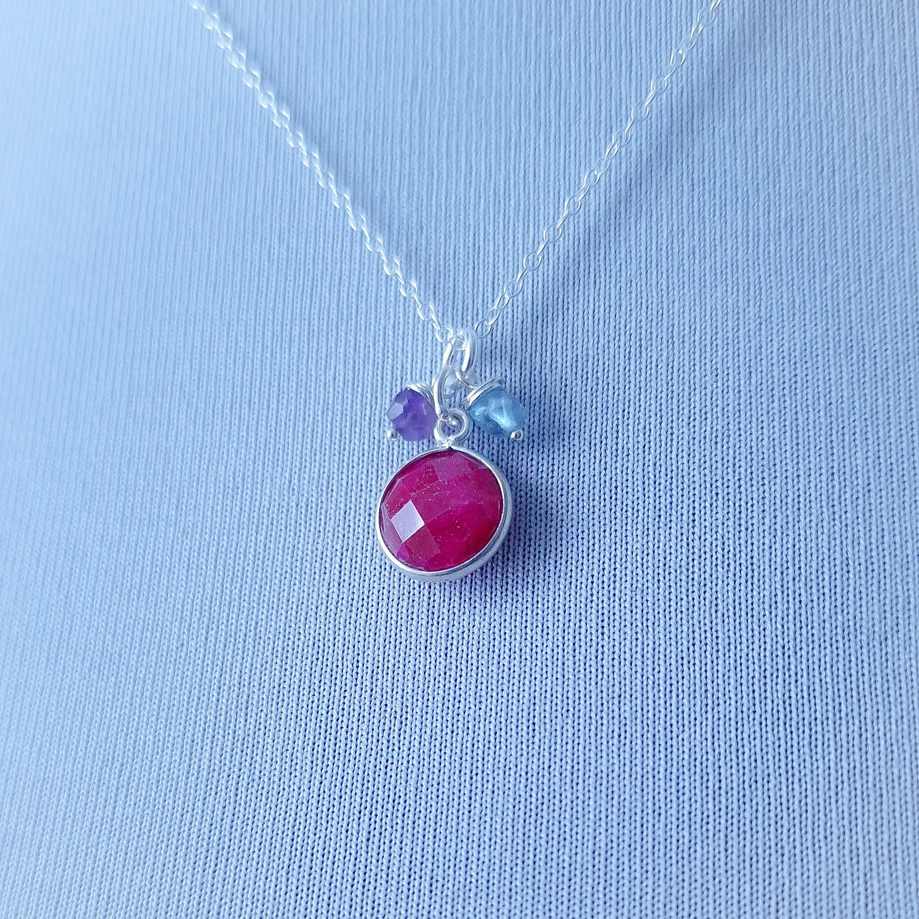 Ruby birthstone necklace sterling silver - this delicate silver ruby necklace features amethyst and apatite accents and a red ruby set in 925 Sterling Silver. This dainty pendant necklace is perfect for lovers of delicate jewellery.