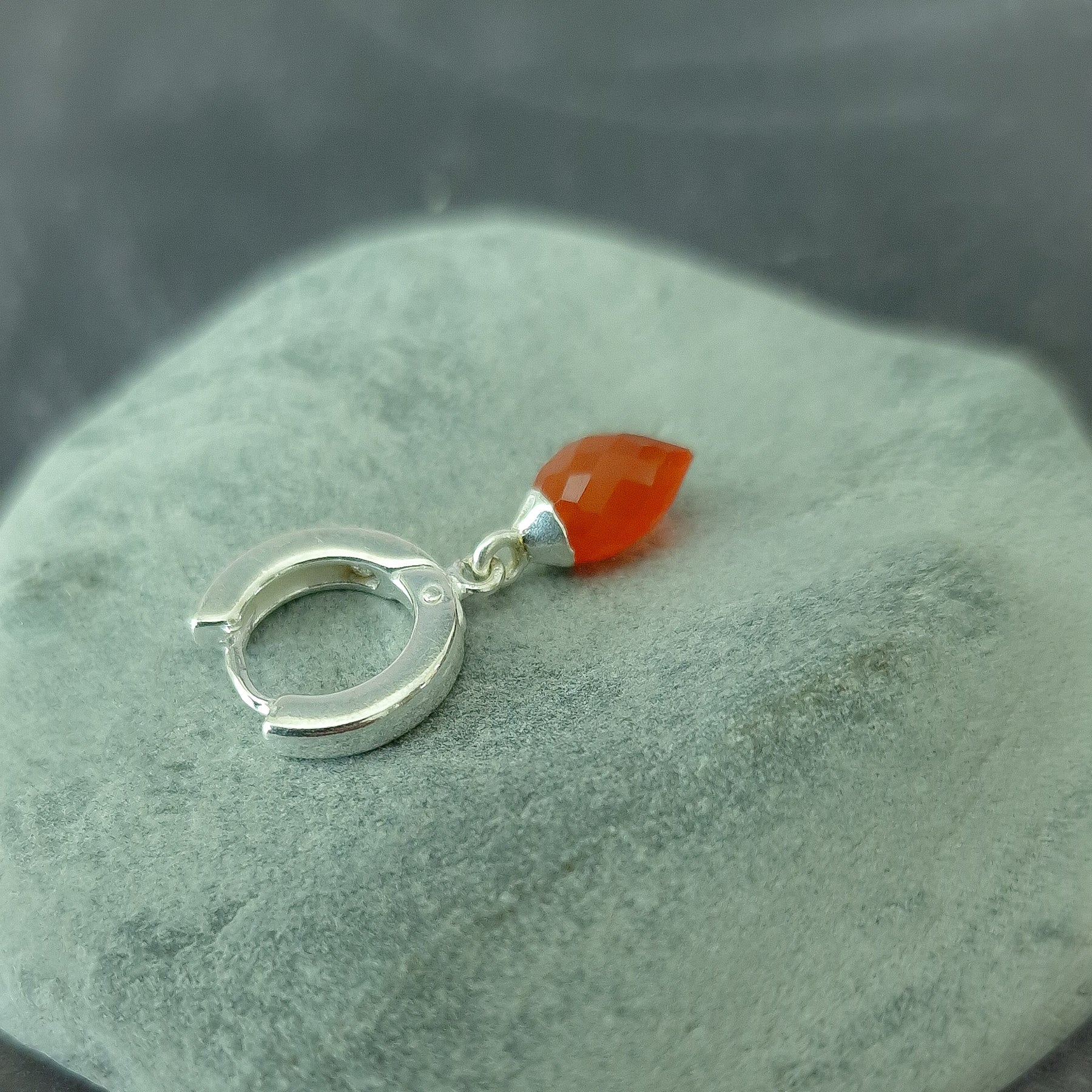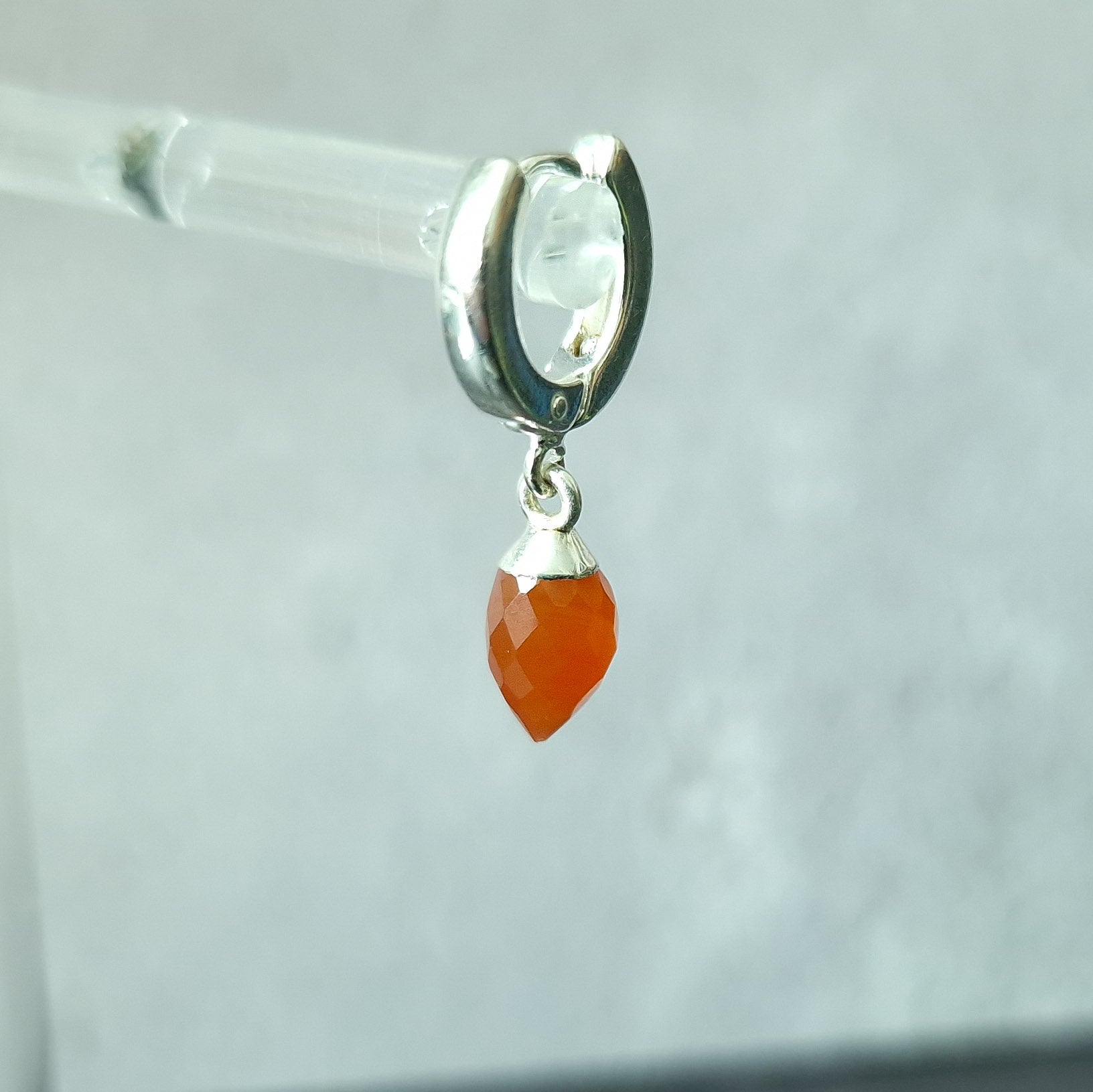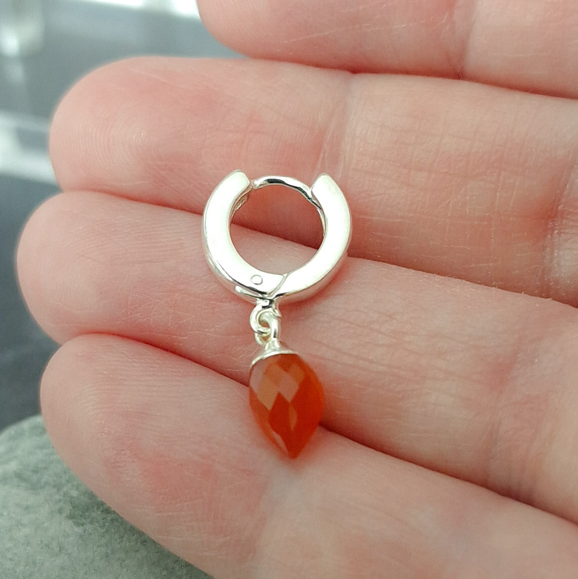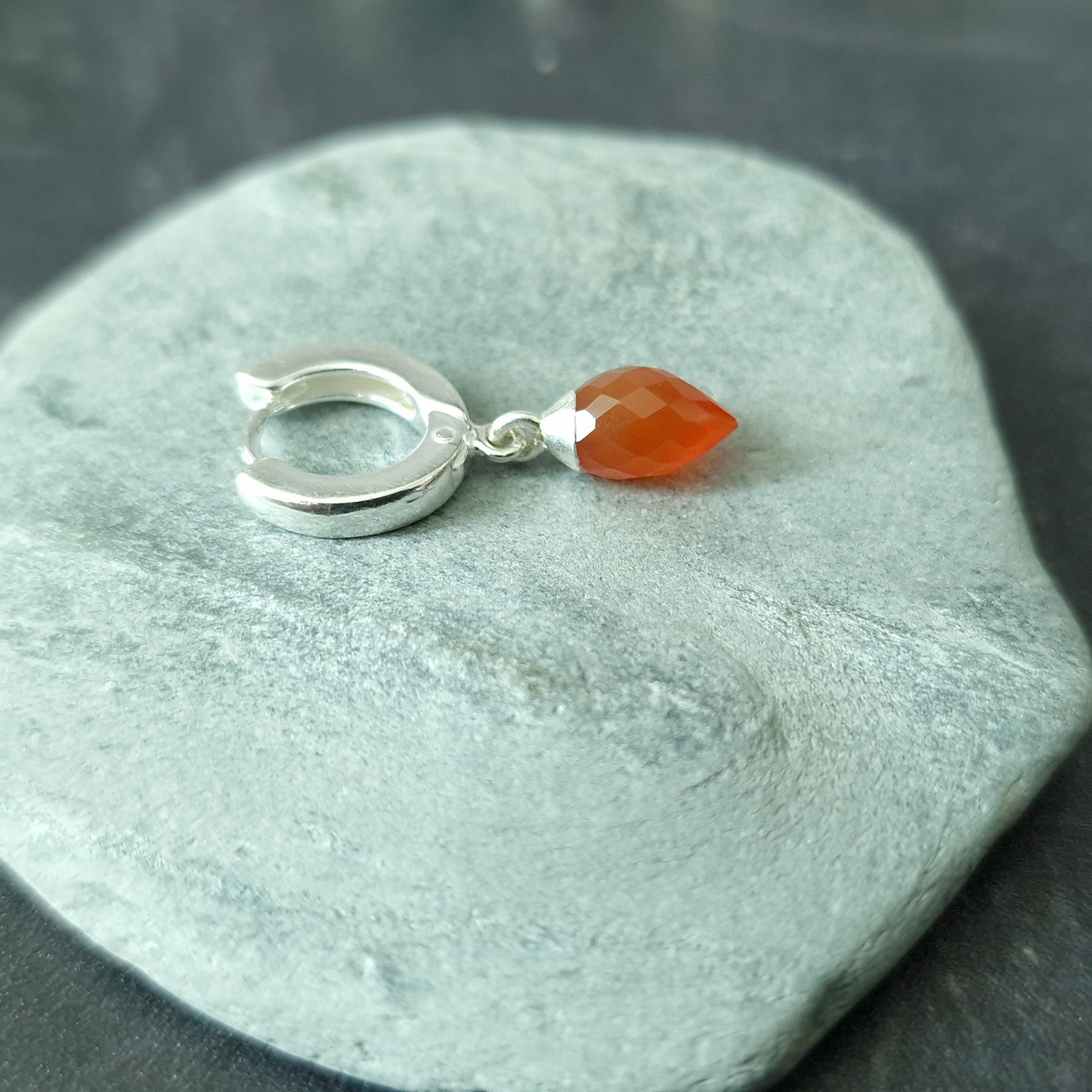 - 1 single Carnelian huggie earring in sterling silver (select the pair variation to receive a set of two earrings)