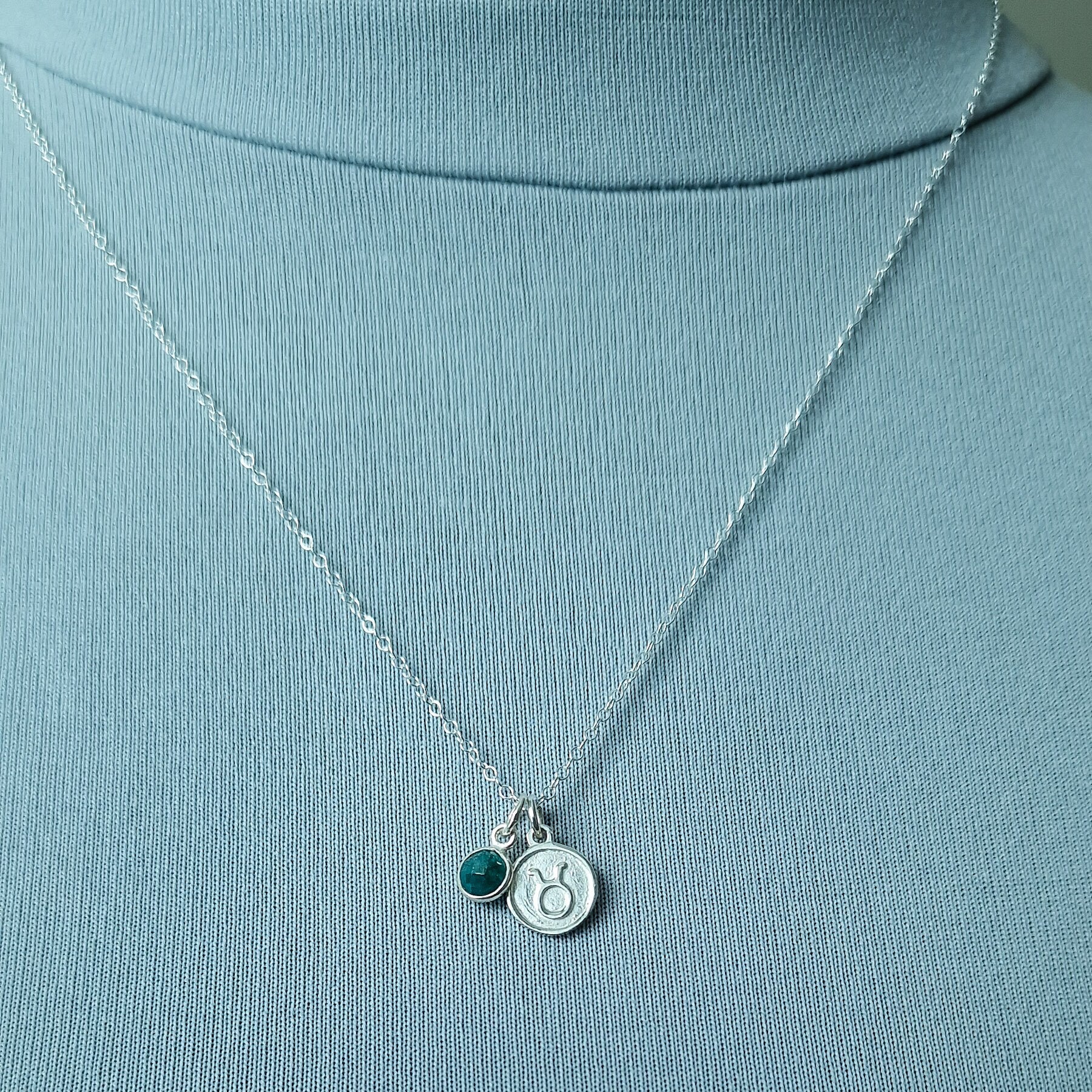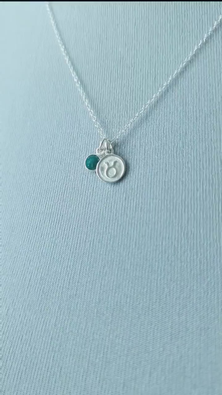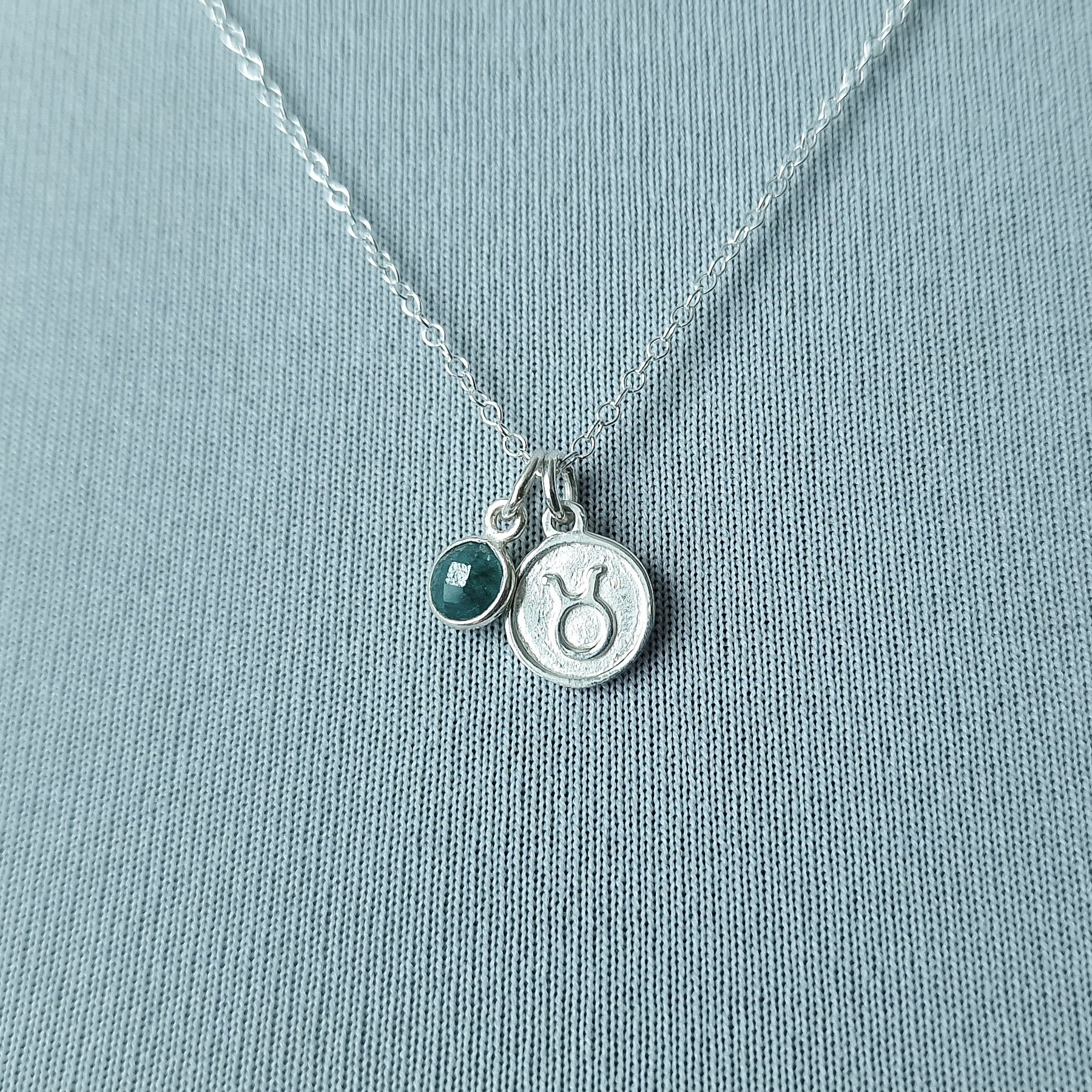 Taurus Necklace - Sterling Silver with Emerald Pendant Charm May Birthday Gift and Birthstone Jewellery