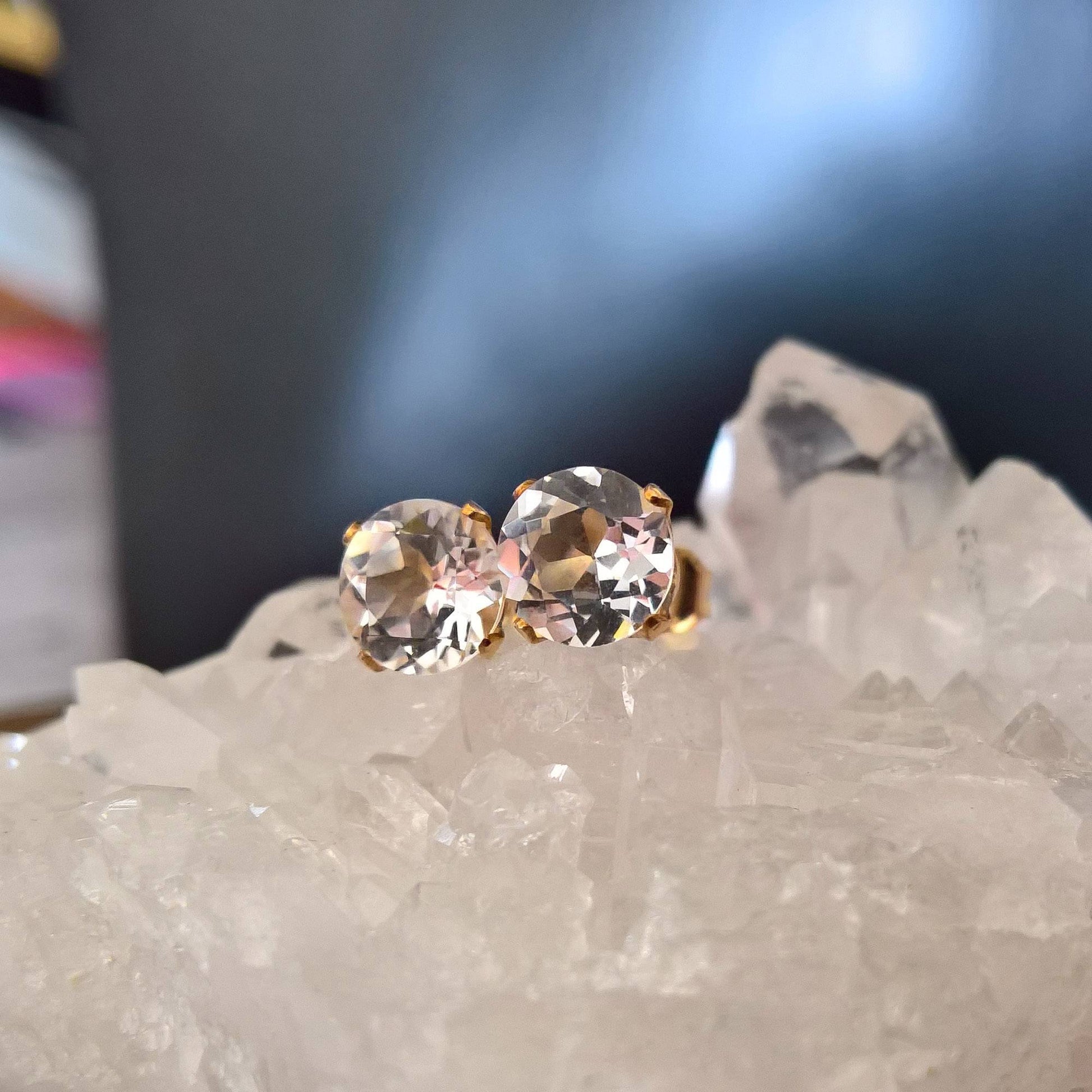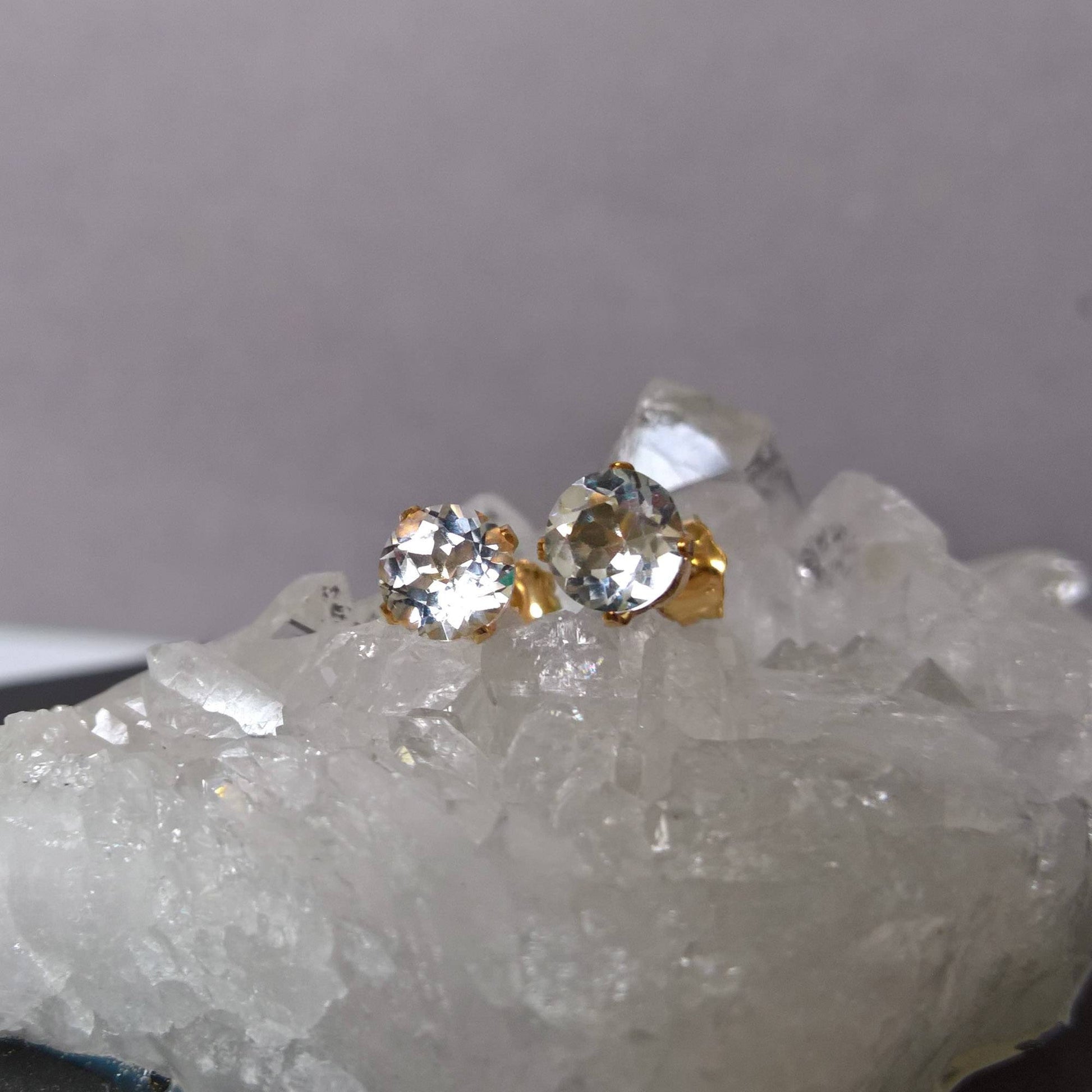 White topaz gemstone stud earrings in gold filled or sterling silver